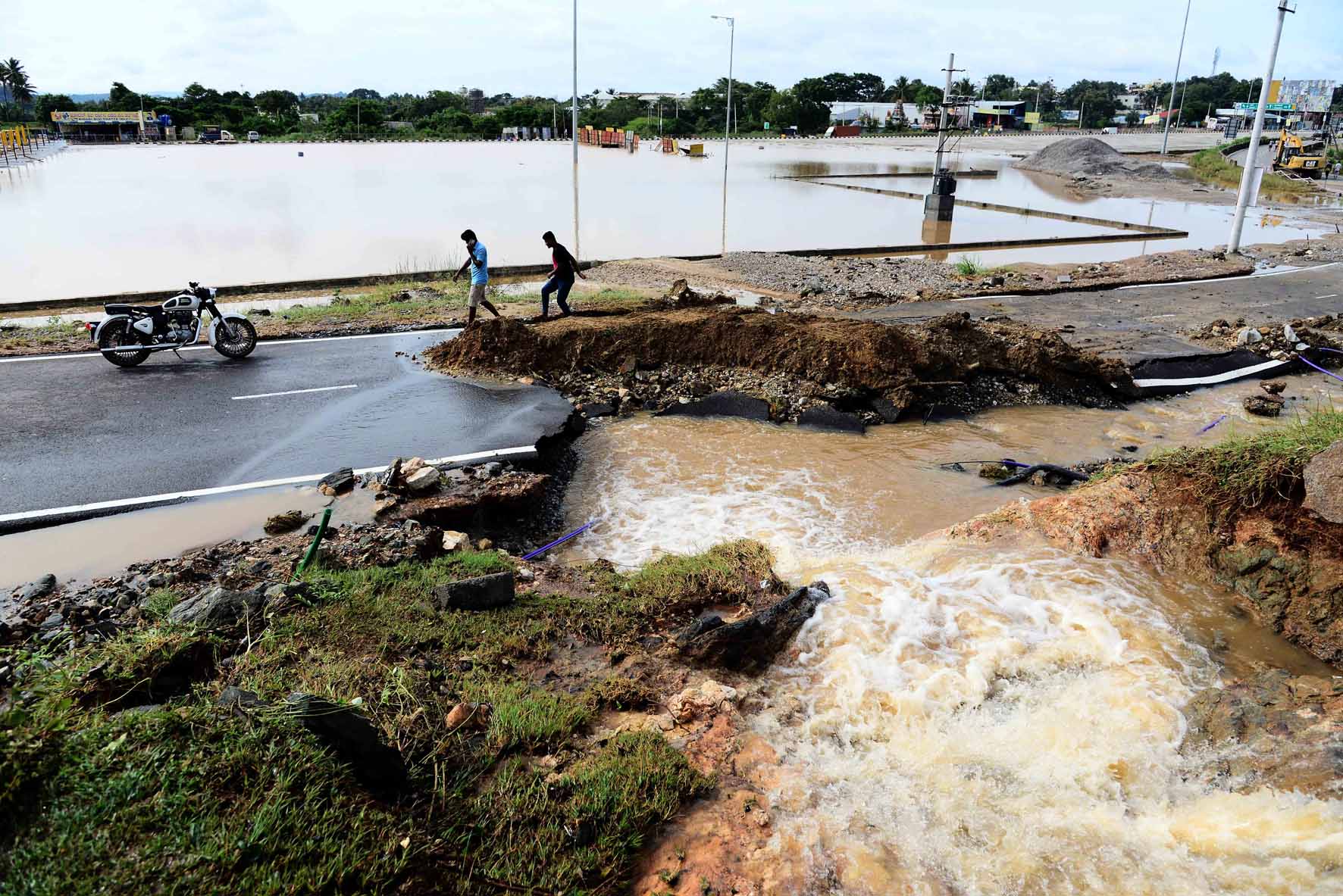 ಚಾಮರಾಜನಗರ ಜಿಲ್ಲೆಯ ಮಾಂಬಳ್ಳಿ ಪೊಲೀಸ್ ಠಾಣೆ ಜಲಾವೃತಗೊಂಡಿದ್ದು, ರಸ್ತೆಯಲ್ಲಿ ಹರಿಯುವ ನೀರಿನಲ್ಲಿ ಸಂಚರಿಸಲು ವಾಹನ ಸವಾರರು ಪರದಾಡುವಂತಾಗಿದೆ.