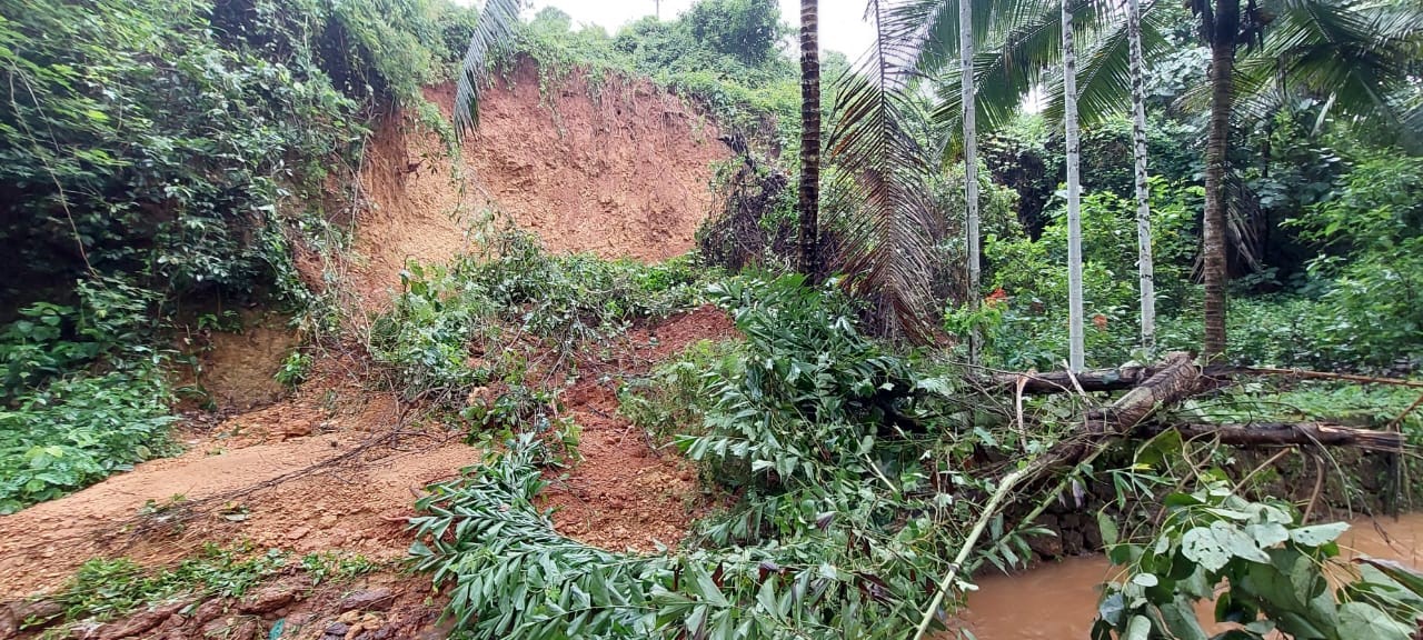 ಮುಳಿಯಾರು ಪತ್ತನಡ್ಕ ಕಡಪ್ಪಂಗಾಲ್ ನಲ್ಲಿ ಮನೆಯೊಂದರ ಮೇಲೆ ಗುಡ್ಡ ಕುಸಿದು ಮನೆ ಭಾಗಶಃ ಹಾನಿಯಾಗಿದೆ. ಇಲ್ಲಿನ ಸಾವಿತ್ರಿ ಎಂಬವರ ಮನೆ ಮೇಲೆ ಗುಡ್ಡ ಕುಸಿದು ಹಾನಿ ಉಂಟಾಗಿದ್ದು, ಮನೆಯವರು ಅಪಾಯದಿಂದ ಪಾರಾಗಿದ್ದಾರೆ.