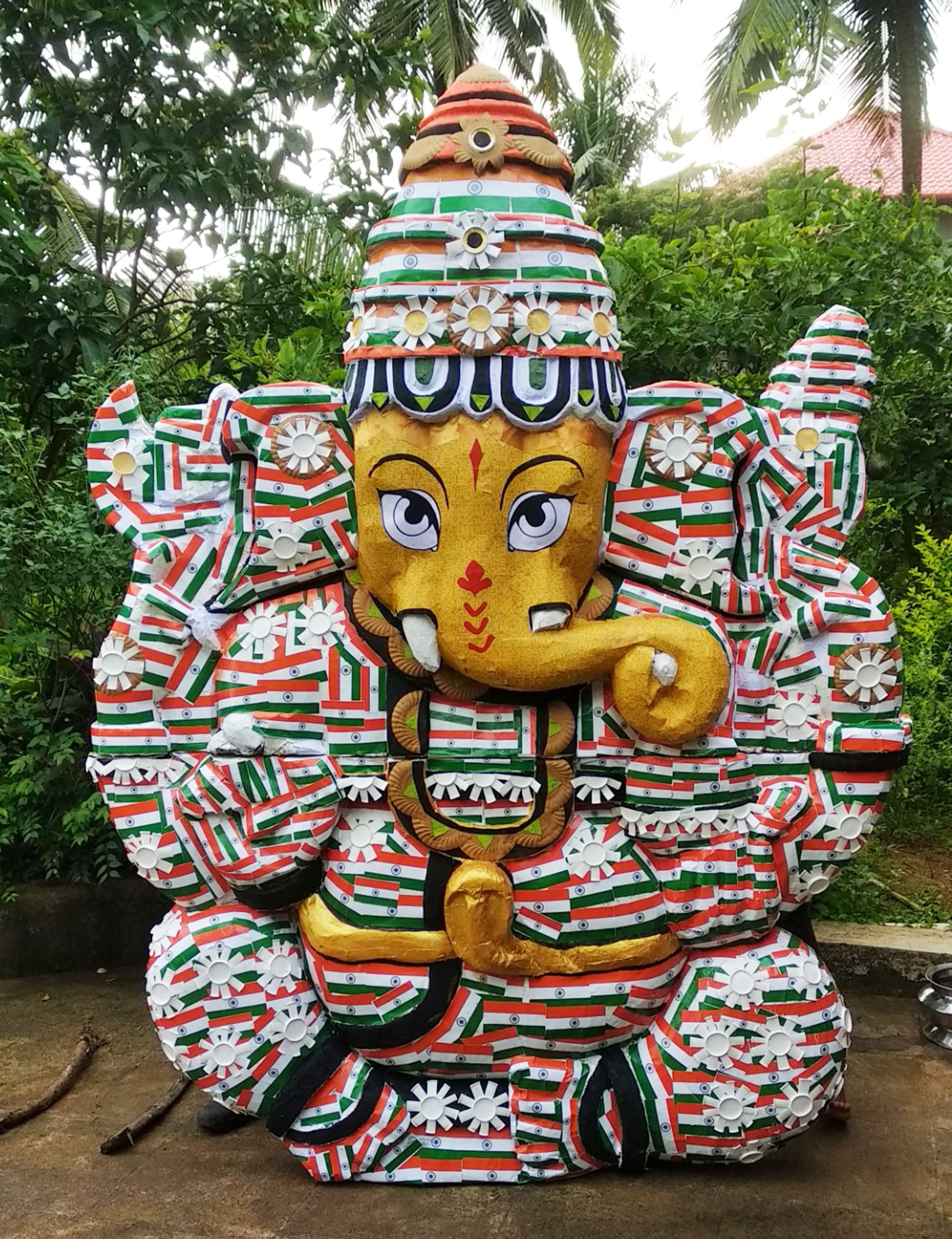 ಮಣಿಪಾಲದ ಕಲಾವಿದರಾದ ಶ್ರೀನಾಥ್ ಮಣಿಪಾಲ, ವೆಂಕಿ ಪಲಿಮಾರು ಹಾಗೂ ರವಿ ಹಿರೇಬೆಟ್ಟು ಗಣೇಶನ ಈ ಅಪರೂಪದ ಕಲಾಕೃತಿಯನ್ನು ರಚಿಸಿದ್ದು, ಇದಕ್ಕಾಗಿ 1000ಕ್ಕೂ ಅಧಿಕ ಧ್ವಜಗಳನ್ನು ಹಾಗೂ ಪರಿಸರ ಸ್ನೇಹಿ ವಸ್ತುಗಳನ್ನು ಬಳಸಿದ್ದಾರೆ.