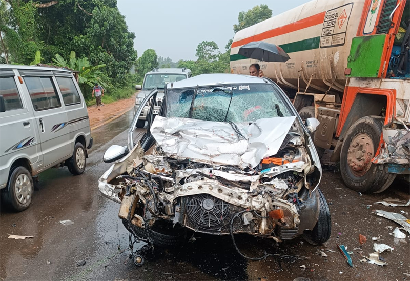 ಮಂಗಳೂರಿನಿಂದ ಬೆಂಗಳೂರಿಗೆ ಸಂಚರಿಸುತ್ತಿದ್ದ ಟ್ಯಾಂಕರ್ ಲಾರಿ ಮತ್ತು ಮಂಗಳೂರು ಕಡೆಗೆ ಬರುತ್ತಿದ್ದ ಕಾರು ಮಧ್ಯೆ ಅಪಘಾತ ಸಂಭವಿಸಿದೆ. ಗಾಯಾಳುಗಳನ್ನು ಸೋಷಿಯಲ್ ಇಕ್ವ ಆಂಬ್ಯುಲೆನ್ಸ್ ಮೂಲಕ ಆಸ್ಪತ್ರೆಗೆ ಸಾಗಿಸಲಾಯಿತು.