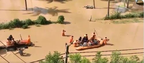 ಜಲಾವೃತಗೊಂಡ ರಸ್ತೆಯಲ್ಲಿ ಸಿಲುಕಿದ್ದ ವ್ಯಕ್ತಿಯ ರಕ್ಷಣೆ