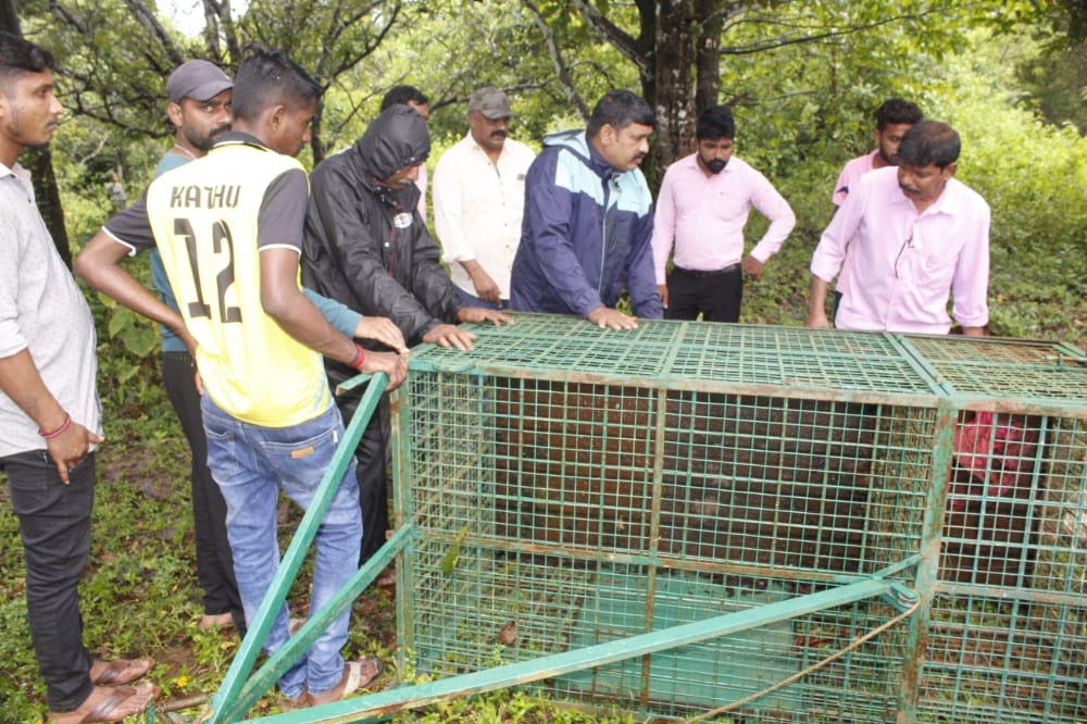 ಚಿರತೆ ಸೆರೆಗೆ ಬೋನು ಇಟ್ಟಿರುವ ಅರಣ್ಯ ಇಲಾಖೆ ಸಿಬ್ಬಂದಿ