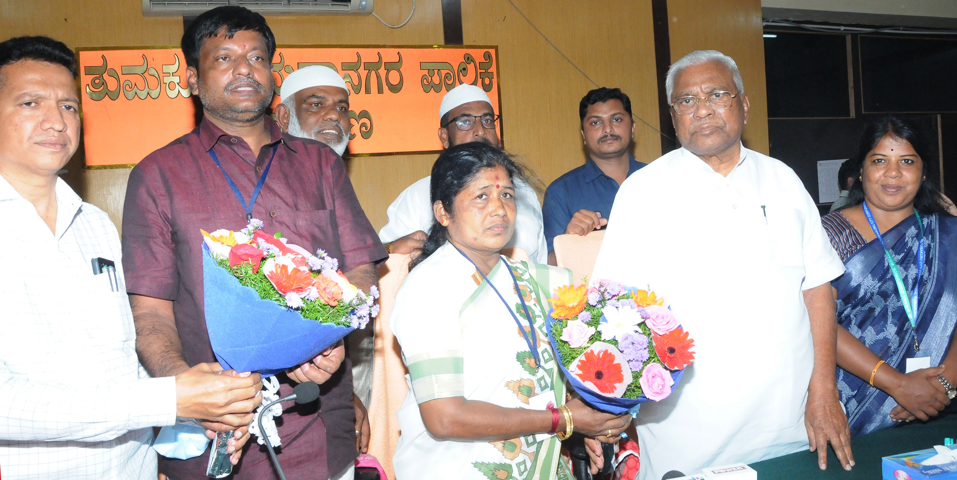 ನೂತನ ಮೇಯರ್ ಮತ್ತು ಉಪಮೇಯರ್ ಅವರನ್ನು ಅಭಿನಂದಿಸಿ ಮಾತನಾಡಿದ ಸಂಸದ ಜಿ.ಎಸ್.ಬಸವರಾಜು, ತುಮಕೂರು ಮಹಾನಗರ ಪಾಲಿಕೆ ಸ್ವಚ್ಚತೆಯಲ್ಲಿ 6ನೇ ಸ್ಥಾನದಲ್ಲಿದೆ.ಇಬ್ಬರು ಪಕ್ಷಾತೀತವಾಗಿ ಕೆಲಸ ಮಾಡುವ ಮೂಲಕ ನಗರಪಾಲಿಕೆಗೆ ಒಳ್ಳೆಯ ಹೆಸರು ತರಬೇಕು. ಕನಿಷ್ಠ ದಿನದ 3-4 ಗಂಟೆಯಾದರೂ ಕಚೇರಿಯಲ್ಲಿದ್ದು, ಜನರ ಅಹವಾಲುಗಳನ್ನು ಆಲಿಸುವ ಮೂಲಕ ಅವರ ಸಮಸ್ಯೆಗಳಿಗೆ ಸ್ಪಂದಿಸಿ ಕೆಲಸ ಮಾಡುವಂತೆ ಸಲಹೆ ನೀಡಿದರು.