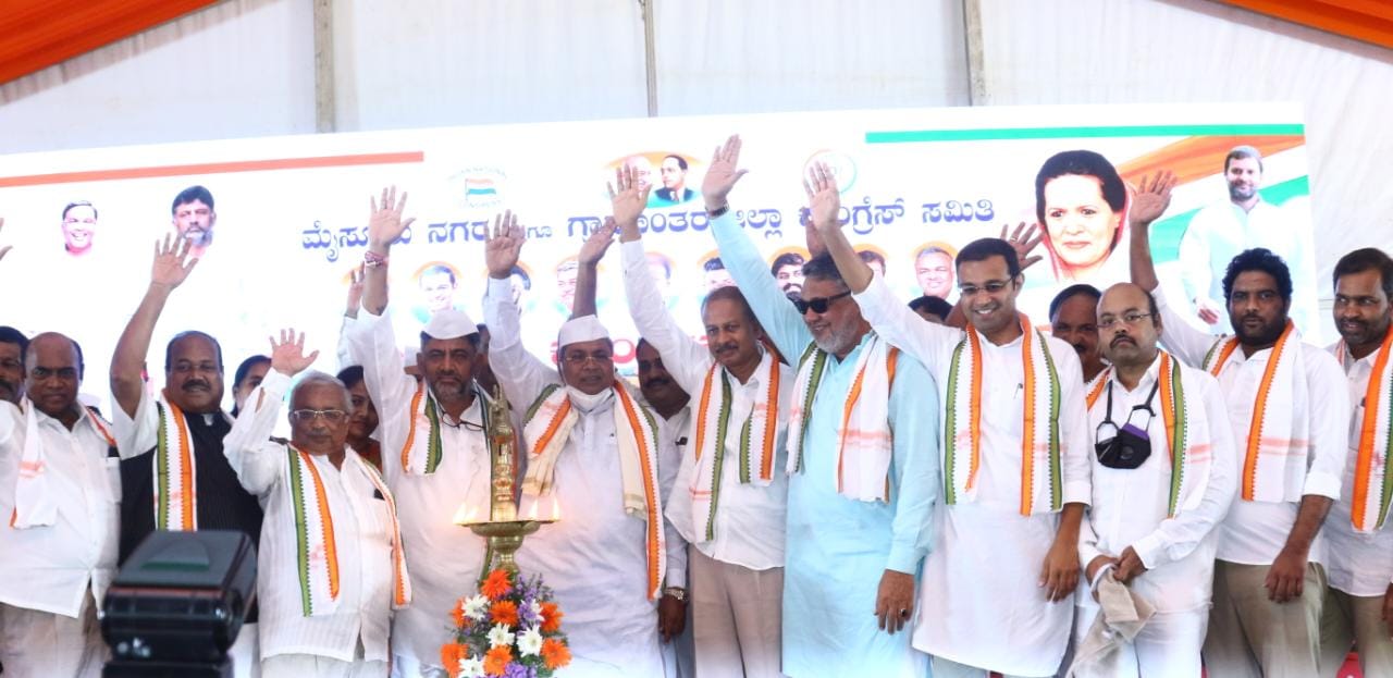 ಕರ್ನಾಟಕ ಪ್ರದೇಶ ಕಾಂಗ್ರೆಸ್ ಸಮಿತಿ ಅಧ್ಯಕ್ಷ ಡಿ.ಕೆ.ಶಿವಕುಮಾರ್ ಮಾತನಾಡಿ, 'ವಿಜಯದಶಮಿ ವೇಳೆ ರಾಹುಲ್ ಗಾಂಧಿ ನೇತೃತ್ವದ ಪಾದಯಾತ್ರೆ ಮೈಸೂರಿಗೆ ಬರಲಿದೆ. ಪ್ರತಿ ವಿಧಾನಸಭಾ ಕ್ಷೇತ್ರದಿಂದ 10ರಿಂದ 15 ಸಾವಿರ ಜನರನ್ನು ಕರೆತರಬೇಕು. ಕಾರ್ಯಕರ್ತರ ನಡಿಗೆ ದೇಶಕ್ಕೆ ಕೊಡುಗೆ ನೀಡಬೇಕು' ಎಂದರು.