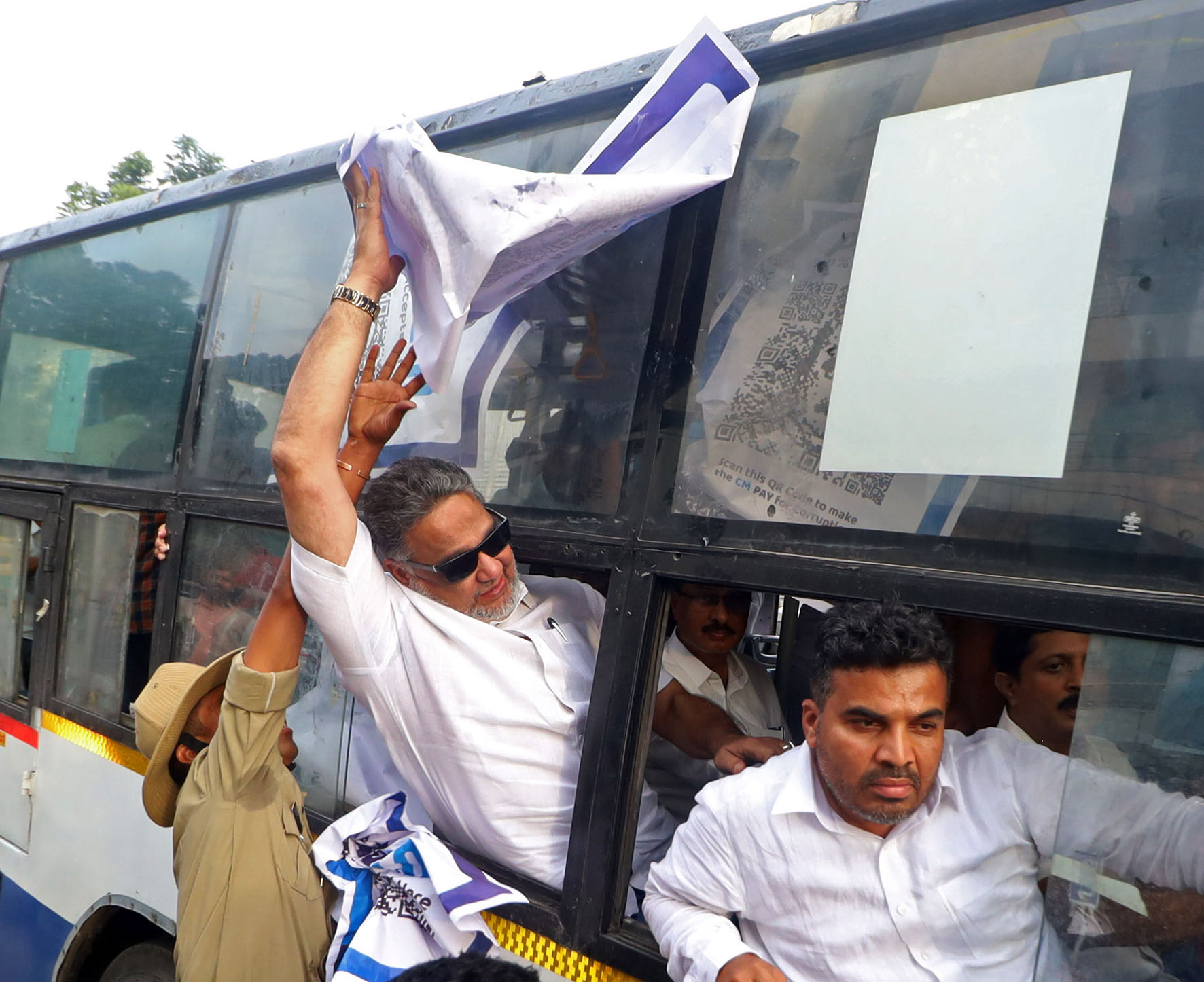 ಈ ವೇಳೆ ಮಧ್ಯಪ್ರವೇಶಿಸಿದ ಪೊಲೀಸರು ಪೋಸ್ಟರ್ ಗಳನ್ನು ತೆಗೆದು, ಕಾಂಗ್ರೆಸ್ ನಾಯಕರನ್ನು ವಶಕ್ಕೆ ಪಡೆದು ವಾಹನದಲ್ಲಿ ಇಲ್ಲಿನ ಹೈಗ್ರೌಂಡ್ಸ್ ಪೊಲೀಸ್ ಠಾಣೆಗೆ ಕರೆದೊಯ್ದರು.