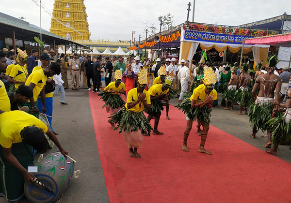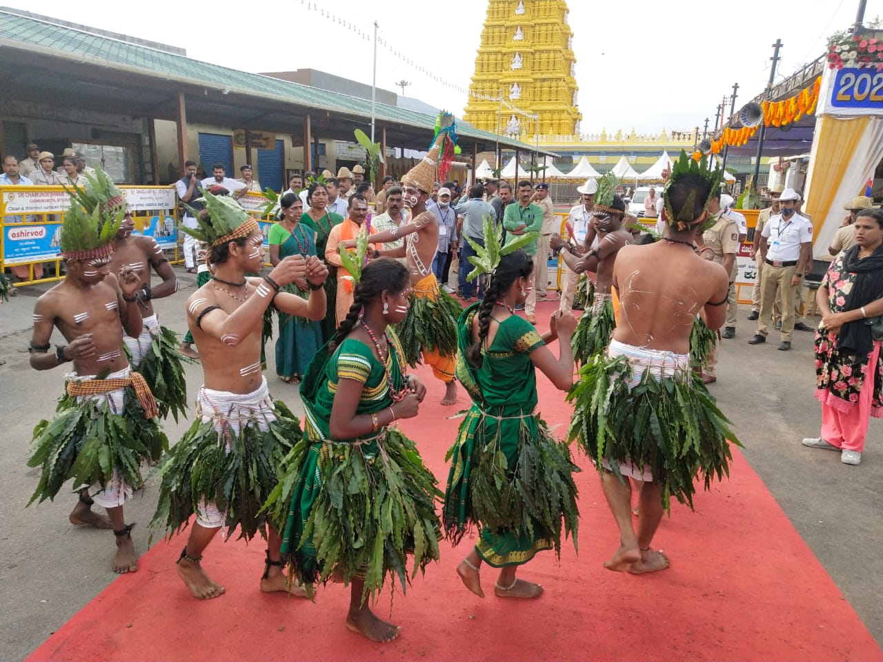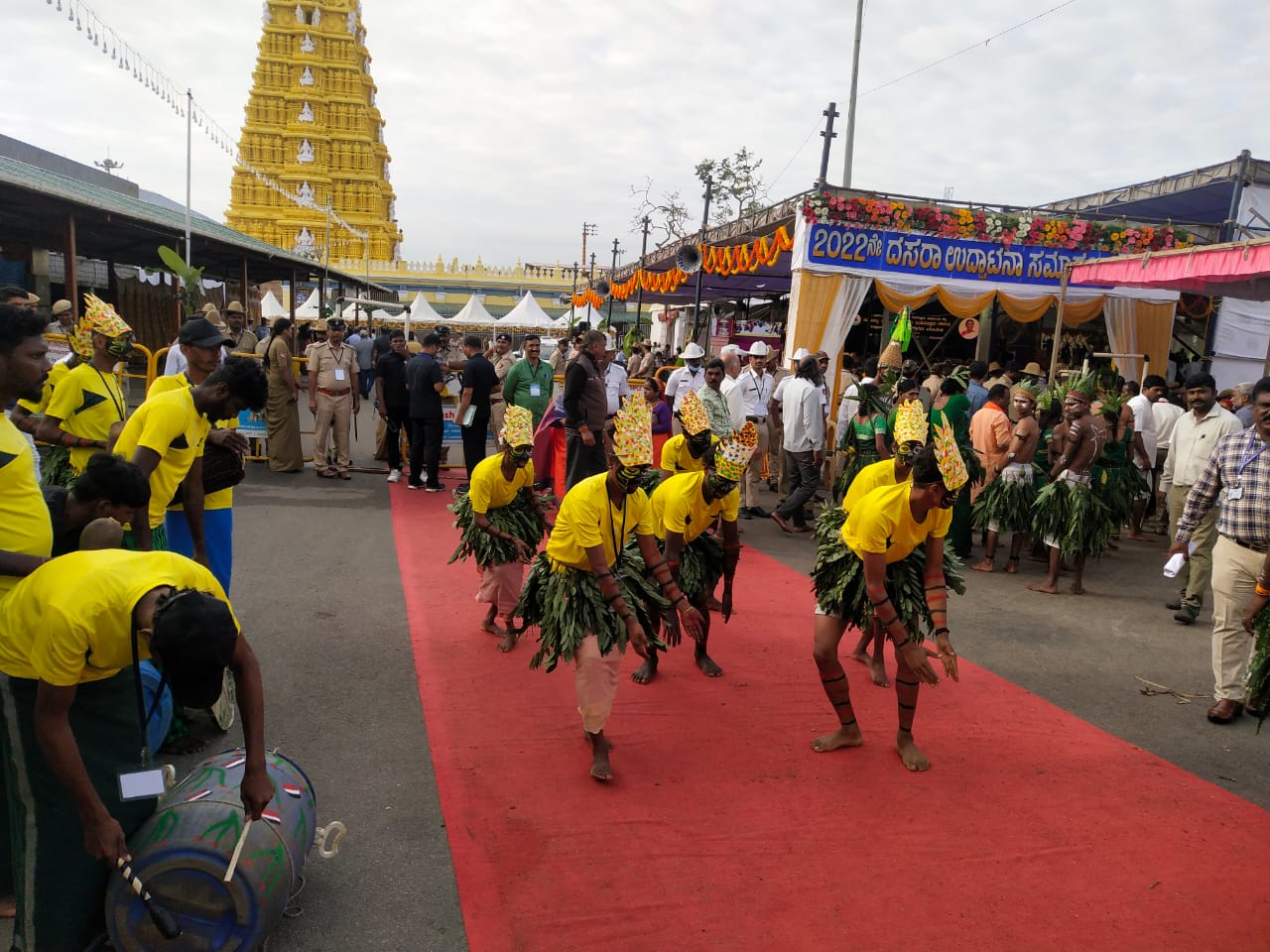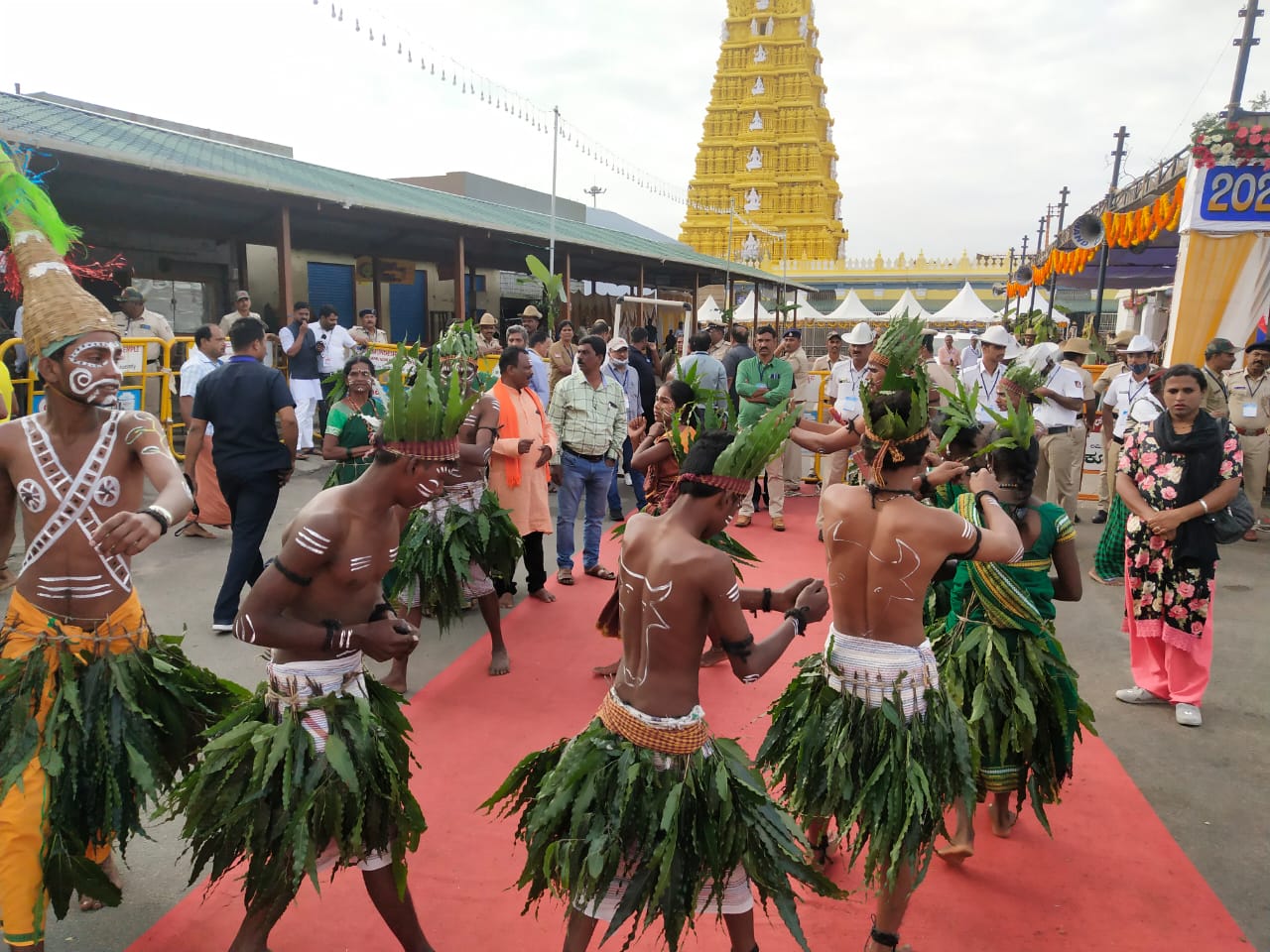 ದಸರಾ ಉದ್ಘಾಟನೆಗೆ ರಾಷ್ಟ್ರಪತಿ ದ್ರೌಪದಿ ಮುರ್ಮು ಅವರು ಆಗಮಿಸುತ್ತಿರುವ ಹಿನ್ನೆಲೆಯಲ್ಲಿ ಬುಡಕಟ್ಟು ಸಮುದಾಯದವರು ಚಾಮುಂಡಿಬೆಟ್ಟಕ್ಕೆ ಆಗಮಿಸಿ ನೃತ್ಯದ ಮೂಲಕ ಗಮನ ಸೆಳೆದರು.
