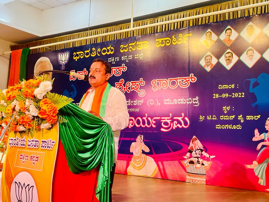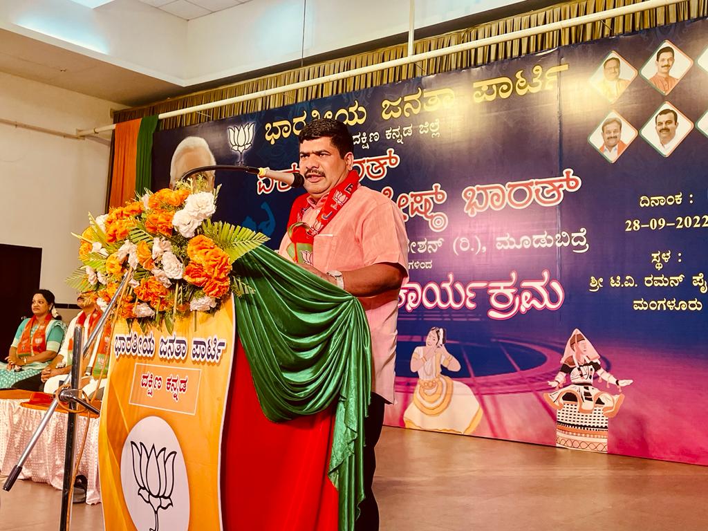ಕಾರ್ಯಕ್ರಮ ಉದ್ಘಾಟಿಸಿ ಮಾತನಾಡಿದ ಬಿಜೆಪಿ ದ.ಕ. ಜಿಲ್ಲಾಧ್ಯಕ್ಷ ಸುದರ್ಶನ ಮೂಡುಬಿದಿರೆ ಸರ್ವರಿಗೂ ಸಮಪಾಲು, ಸಮಬಾಳು ಎಂಬ ಧ್ಯೇಯದೊಂದಿಗೆ ಆಡಳಿತ ನಡೆಸುತ್ತಿರುವ ಪ್ರಧಾನಿ ನರೇಂದ್ರ ಮೋದಿ ಅವರಿಂದ ಭಾರತ ಮತ್ತೆ ಜಾಗತಿಕ ಮಟ್ಟದಲ್ಲಿ ಗುರುತಿಸಲ್ಪಟ್ಟಿವೆ ಎಂದರು.