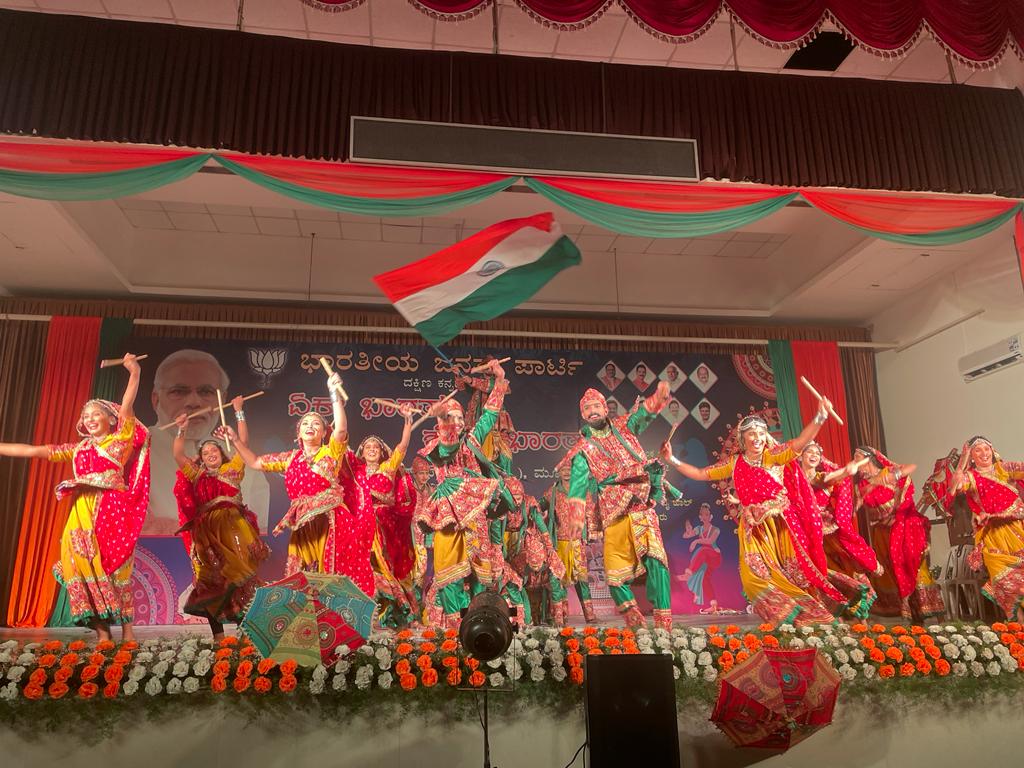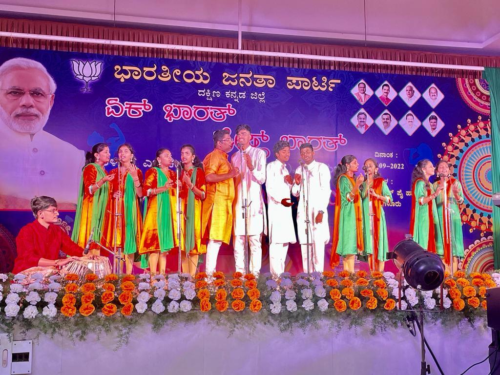 ಮಂಗಳೂರು, ಸೆ.28: ಪ್ರಧಾನಿ ನರೇಂದ್ರ ಮೋದಿಯ ಹುಟ್ಟುಹಬ್ಬ ಆಚರಣೆಯ ಸೇವಾ ಪಾಕ್ಷಿಕದ ಅಂಗವಾಗಿ ಬಿಜೆಪಿ ದ.ಕ. ಜಿಲ್ಲಾ ಸಮಿತಿಯ ವತಿಯಿಂದ ನಗರದ ಟಿ.ವಿ. ರಮಣ ಪೈ ಸಭಾಂಗಣದಲ್ಲಿ ಬುಧವಾರ ‘ಏಕ್ ಭಾರತ್ ಶ್ರೇಷ್ಠ್ ಭಾರತ್’ ಪರಿಕಲ್ಪನೆಯಲ್ಲಿ ಮೂಡುಬಿದಿರೆ ಆಳ್ವಾಸ್ ಶಿಕ್ಷಣ ಪ್ರತಿಷ್ಠಾನ ವಿದ್ಯಾರ್ಥಿಗಳಿಂದ ಸಾಂಸ್ಕೃತಿಕ ಕಾರ್ಯಕ್ರಮ ನಡೆಯಿತು.