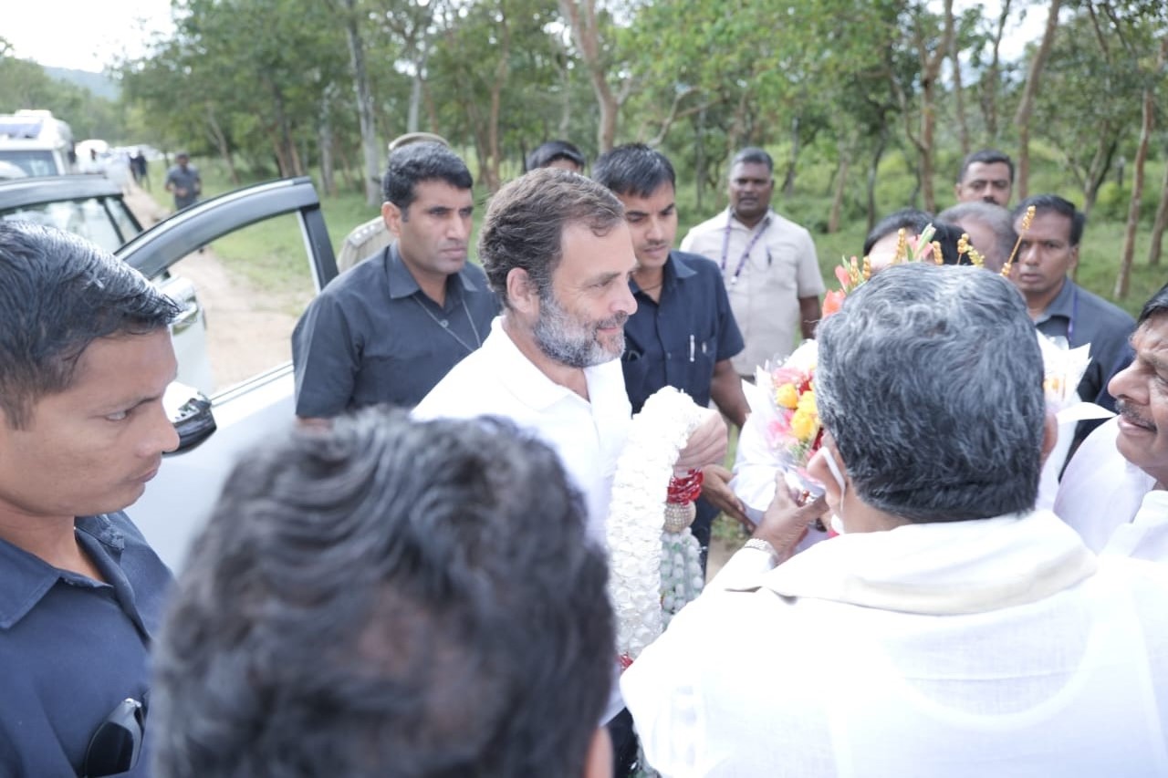 'ಭಾರತ್ ಜೋಡೋ ಯಾತ್ರೆ': ರಾಹುಲ್ ಗಾಂಧಿಯನ್ನು ಬರಮಾಡಿಕೊಂಡ ಸಿದ್ದರಾಮಯ್ಯ