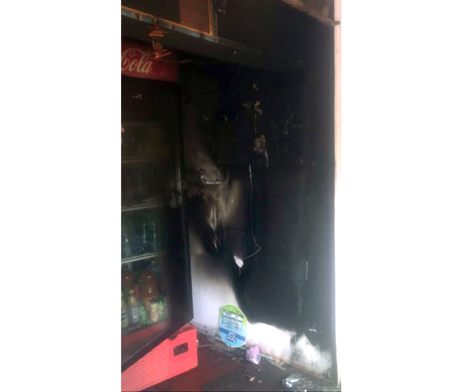 ರೇಣುಕಾ ಎಂಬುವವರಿಗೆ ಸೇರಿದ್ದ ಕಿರಾಣಿ ಅಂಗಡಿಯಲ್ಲಿ ಶಾರ್ಟ್ ಸರ್ಕ್ಯೂಟ್ ನಿಂದ ಬೆಂಕಿ ಕಾಣಿಸಿಕೊಂಡಿದೆ. ಇದರಿಂದ ಅಂಗಡಿಯಲ್ಲಿದ್ದ ಫ್ರಿಡ್ಜ್ ಸೇರಿದಂತೆ ಸರಕು-ವಸ್ತುಗಳು ಸಂಪೂರ್ಣ ಸುಟ್ಟು ಹೋಗಿವೆ.