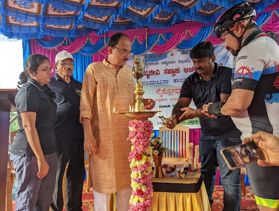 ಗೇರು ಅಭಿವೃದ್ಧಿ ನಿಗಮದ ಅಧ್ಯಕ್ಷರಾದ ಮಣಿರಾಜ ಶೆಟ್ಟಿ ಸೈಕಲ್ ಜಾಥಾಗೆ ಹಸಿರು ನಿಶಾನೆ ತೋರಿಸಿ ಕಾರ್ಯಕ್ರಮವನ್ನು ದೀಪ ಬೆಳಗಿಸಿ ಉದ್ಘಾಟಿಸಿದರು.