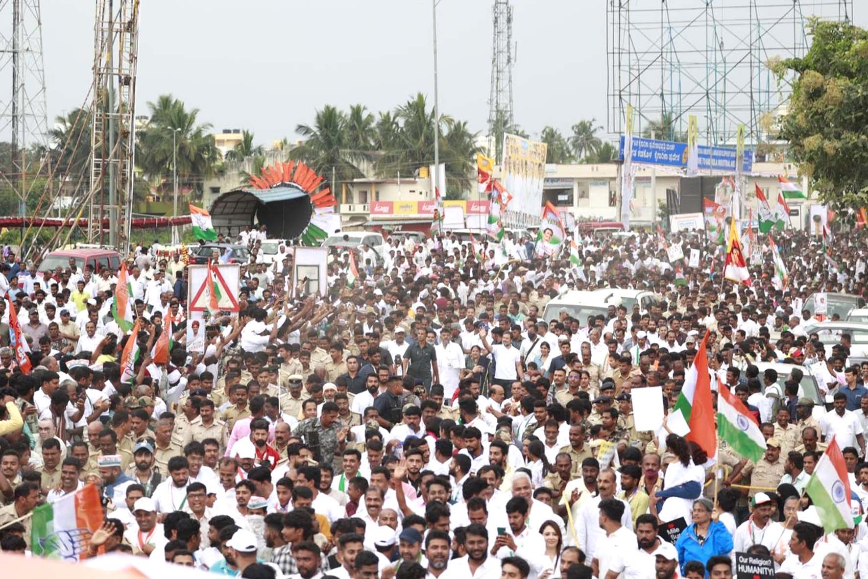 ಮೈಸೂರು: ಭಾರತ್ ಜೋಡೋ ಪಾದಯಾತ್ರೆಗೆ ಅಭೂತ ಪೂರ್ವ ಬೆಂಬಲ ವ್ಯಕ್ತವಾಗಿದ್ದು ಮೂರನೇ ದಿನವಾದ ರವಿವಾರ ಮೈಸೂರುನಗರಕ್ಕೆ ಆಗಮಿಸಿ ರಾಹುಲ್ ಗಾಂಧಿಗೆ ಅದ್ದೂರಿ ಸ್ವಾಗತ ಕೋರಲಾಯಿತು.