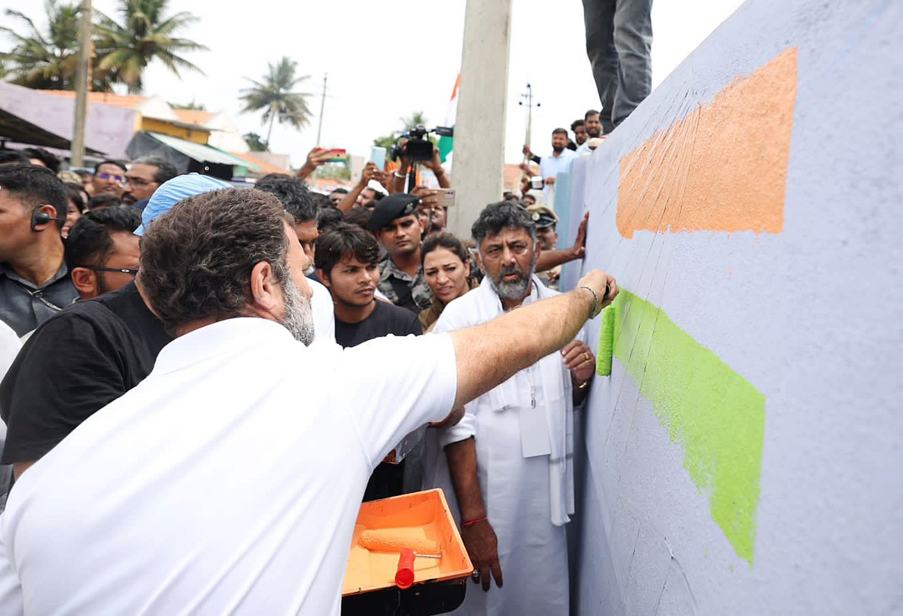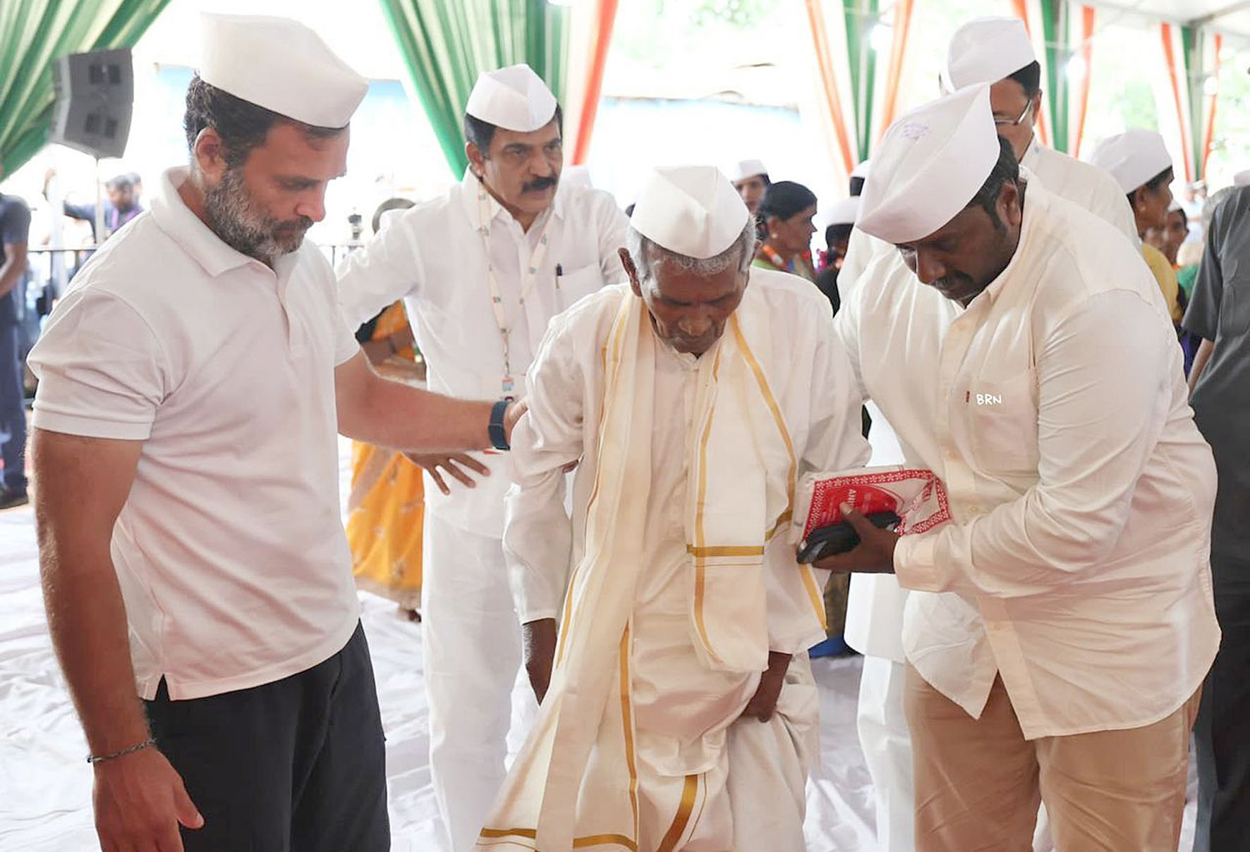 ರಾಹುಲ್ ಗಾಂಧಿ ಯೊಂದಿಗೆ ಆಗಮಿಸಿದ್ದ ಸೇವಾ ದಳ ಮತ್ತು ಕೆಲವು ಉತ್ತರ ಭಾರತದ ಕಾಂಗ್ರೆಸ್ ಕಾರ್ಯಕರ್ತರು ಗಾಂಧಿ ಪಠಣದಲ್ಲಿ ಭಾಗವಹಿಸಿದ್ದರು.