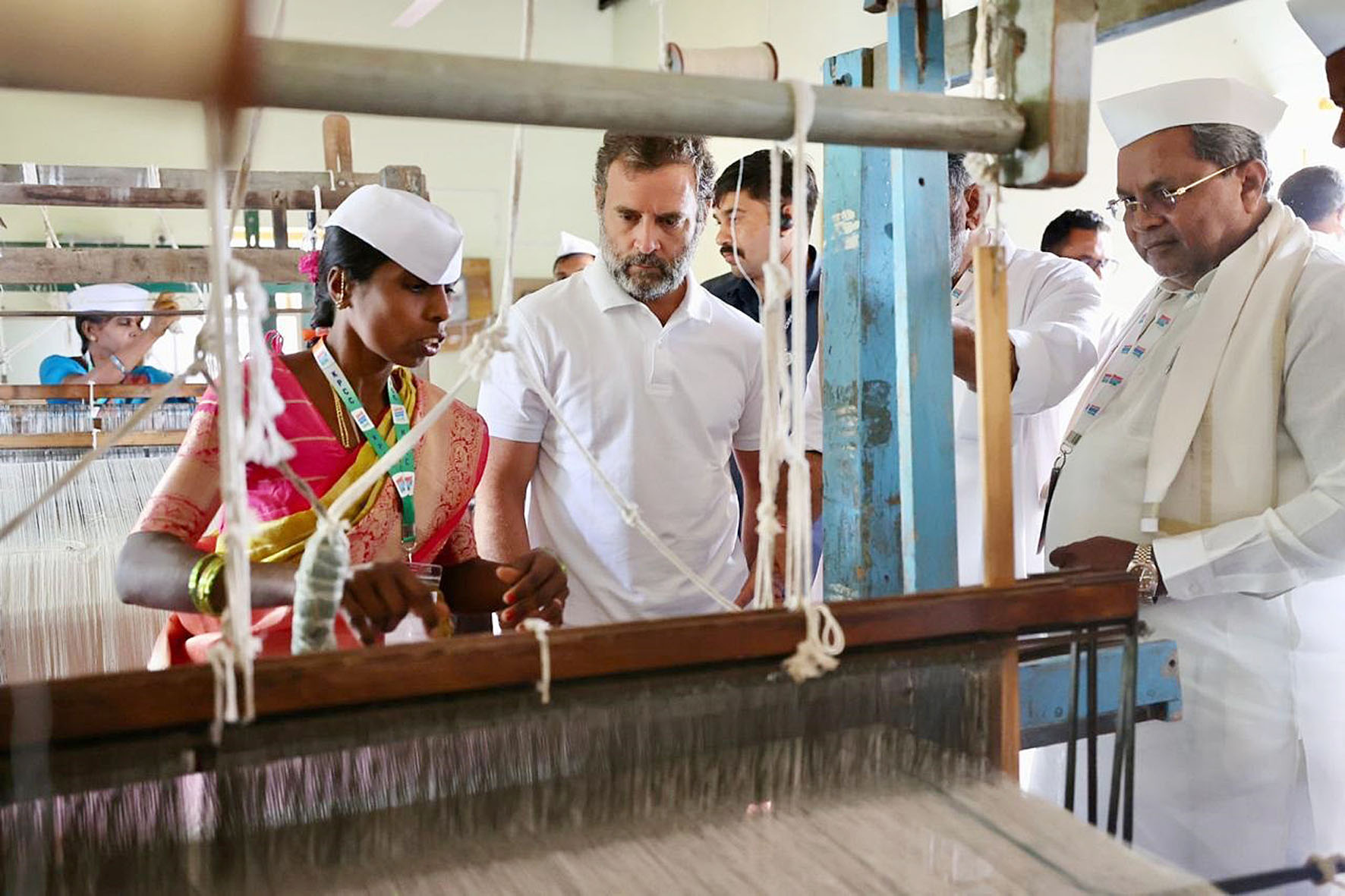 ಇಲ್ಲಿನ ನೇಕಾರರೊಂದಿಗೆ ಒಂದು ಗಂಟೆಗೂ ಹೆಚ್ವು ಸಮಯ ಸಂವಾದ ನಡೆಸಿ ಅವರು ತಯಾರಿಸಿದ ಉತ್ಪನ್ನಗಳ ಮಾರಾಟ ಮತ್ತು ಅಲ್ಲಿನ ಸ್ಥಿಗತಿಗಳ ಕುರಿತು ಮಾಹಿತಿ ಪಡೆದರು.