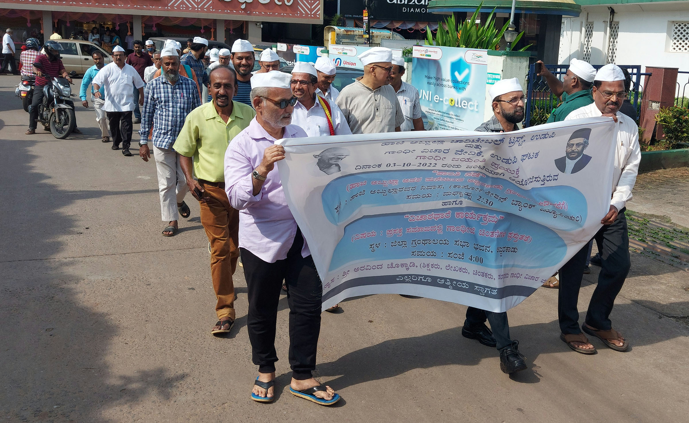 ಹಾಜಿ ಅಬ್ದುಲ್ಲಾರ ಮನೆಯಿಂದ ಹೊರಟ ನಡಿಗೆ, ಕೆ.ಎಂ.ಮಾರ್ಗ, ಕೋರ್ಟ್ ರಸ್ತೆ, ಜೋಡುಕಟ್ಟೆ ಮಾರ್ಗವಾಗಿ ಅಜ್ಜರಕಾಡು ಗ್ರಂಥಾಲಯದಲ್ಲಿ ಸಮಾಪ್ತಿಗೊಂಡಿತು. ಹಿರಿಯ ಗಾಂಧಿವಾದಿ ರಾಜಗೋಪಾಲ್, ಕಸಾಪ ಜಿಲ್ಲಾಧ್ಯಕ್ಷ ನೀಲಾವರ ಸುರೇಂದ್ರ ಅಡಿಗ, ಹಿರಿಯ ಚಿಂತಕ ಪ್ರೊ.ಫಣಿರಾಜ್, ಪ್ರೊ.ಹಯವದನ ಉಪಾಧ್ಯಾಯ, ಅಮೃತ್ ಶೆಣೈ, ಹುಸೇನ್ ಕೋಡಿಬೆಂಗ್ರೆ, ಬಾಲಕೃಷ್ಣ ಶೆಟ್ಟಿ, ಸೌಜನ್ಯ ಶೆಟ್ಟಿ ಮೊದಲಾದವರು ಉಪಸ್ಥಿತರಿದ್ದರು.