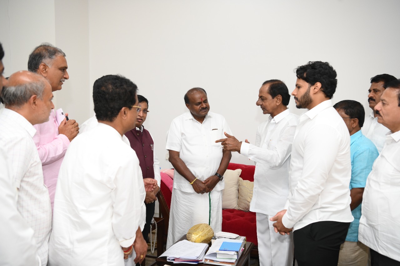 ''2023ರ ಕರ್ನಾಟಕ ವಿಧಾನಸಭೆ ಚುನಾವಣೆ ಹಾಗೂ 2024ರ ಲೋಕಸಭೆ ಚುನಾವಣೆಯಲ್ಲಿ ಜೆಡಿಎಸ್ ಮತ್ತು ಬಿಆರ್ ಎಸ್ ಪಕ್ಷಗಳು ಒಟ್ಟಾಗಿ ಕೆಲಸ ಮಾಡಲಿವೆ. ಕೇರಳ, ತಮಿಳುನಾಡು, ತೆಲಂಗಾಣ, ಆಂಧ್ರ ಪ್ರದೇಶ ರಾಜ್ಯಗಳಲ್ಲಿ ಬಿಜೆಪಿ-ಕಾಂಗ್ರೆಸ್ ಮುಕ್ತ್ ರಾಜಕೀಯ ವಾತಾವರಣವಿದೆ. ಅದೇ ಸ್ಥಿತಿಯನ್ನು ಕರ್ನಾಟದಲ್ಲೂ ತರಲು ನಾನು ಮತ್ತು ಚಂದ್ರಶೇಖರ್ ರಾವ್ ಅವರೂ ನಿರ್ಧಾರ ಮಾಡಿದ್ದೇವೆ. ಆ ನಿಟ್ಟಿನಲ್ಲಿ ಕೆಲಸ ಮಾಡುತ್ತೇವೆ'' ಎಂದರು.