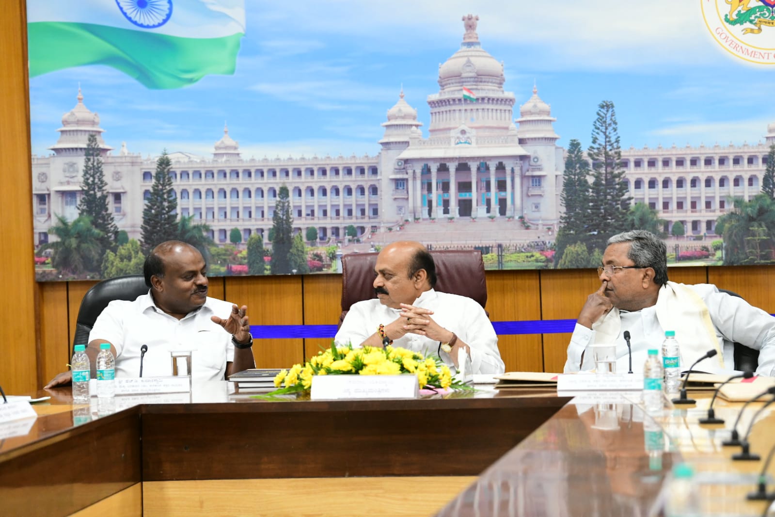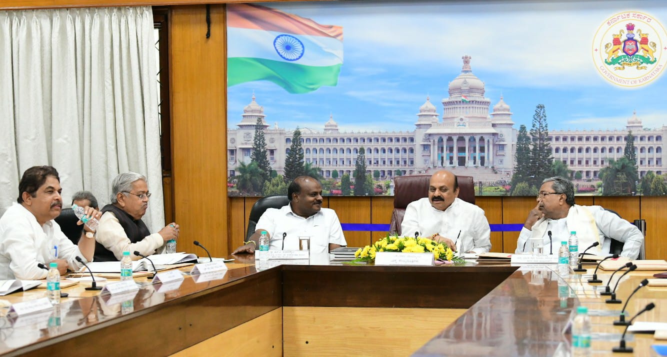 ಬೆಂಗಳೂರು, ಅ.7: ಪರಿಶಿಷ್ಟ ಜಾತಿ ಮತ್ತು ಪರಿಶಿಷ್ಟ ಪಂಗಡದವರ ಮೀಸಲಾತಿ ಹೆಚ್ಚಿಸಲು ರಚಿಸಿರುವ ನ್ಯಾಯಮೂರ್ತಿ ನಾಗಮೋಹನ್ ದಾಸ್ ಸಮಿತಿ ನೀಡಿರುವ ವರದಿ ಕುರಿತು ಚರ್ಚಿಸಲು ಮುಖ್ಯಮಂತ್ರಿ ಬಸವರಾಜ ಬೊಮ್ಮಾಯಿ ಅವರ ಅಧ್ಯಕ್ಷತೆಯಲ್ಲಿ ಇಂದು ಗೃಹ ಕಚೇರಿ ಕೃಷ್ಣಾದಲ್ಲಿ ವಿಧಾನ ಮಂಡಲದ ಉಭಯ ಸದನಗಳ ನಾಯಕರ ಸಭೆ ನಡೆಯಿತು.
