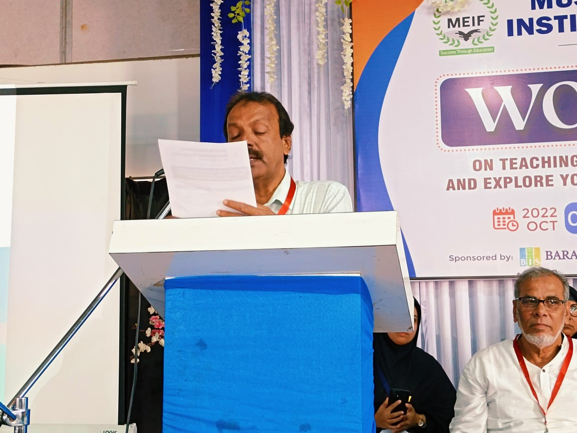 ಮುಸ್ಲಿಂ ಎಜುಕೇಶನಲ್ ಇನ್ಸ್ಟಿಟ್ಯೂಷನ್ಸ್ ಫೆಡರೇಷನ್ (MEIF) ವತಿಯಿಂದ ಅ. 7ಮತ್ತು 8 ರಂದು ಬೋಧನಾ ವಿಧಾನ, ನಾಯಕತ್ವ ಕೌಶಲ್ಯ ಮತ್ತು ಮಾನಸಿಕ ಸಾಮರ್ಥ್ಯಕ್ಕೆ ಸಂಬಂಧಿಸಿದಂತೆ ಅಡ್ಯಾರ್ ಬರಕಾ ಇಂಟರ್ ನ್ಯಾಷನಲ್ ಸ್ಕೂಲ್ ಆಡಿಟೋರಿಯಂನಲ್ಲಿಂದು ಆಯೋಜಿಸಲಾದ ಮೊದಲನೇ ದಿನದ ತರಬೇತಿ ಕಾರ್ಯಕ್ರಮವನ್ನು ಉದ್ಘಾಟಿಸಿ ಅವರು ಮಾತನಾಡಿದರು.