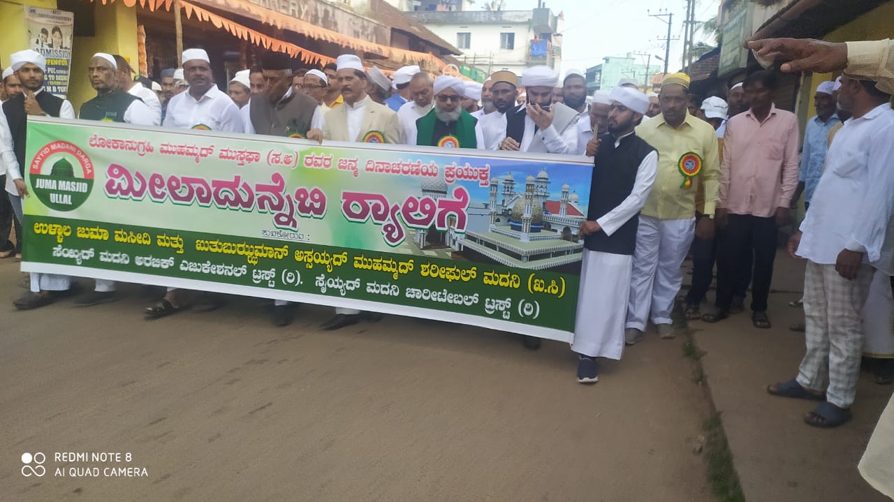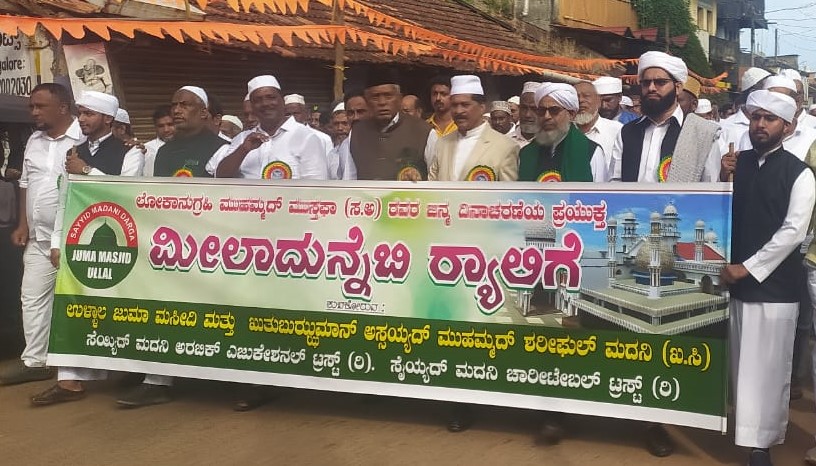 ಬಳಿಕ ಉಳ್ಳಾಲ ಜುಮಾ ಮಸೀದಿ, ಸೆಯ್ಯದ್ ಮದನಿ ದರ್ಗಾ, ಸೆಯ್ಯದ್ ಮದನಿ ಅರೆಬಿಕ್ ಎಜುಕೇಶನಲ್ ಟ್ರಸ್ಟ್, ಸೆಯ್ಯದ್ ಮದನಿ ಚಾರಿಟೇಬಲ್ ಟ್ರಸ್ಟ್ ಇದರ ಆಶ್ರಯದಲ್ಲಿ ಉಳ್ಳಾಲ ದರ್ಗಾ ಅಧ್ಯಕ್ಷ ಹಾಜಿ ಅಬ್ದುಲ್ ರಶೀದ್ ನೇತೃತ್ವದಲ್ಲಿ ಕೋಟೆಪುರದಿಂದ ಕೋಡಿ, ಅಬ್ಬಕ್ಕ ಸರ್ಕಲ್, ಮುಕಚೇರಿ ರಸ್ತೆಯಾಗಿ ಉಳ್ಳಾಲ ದರ್ಗಾಕ್ಕೆ ಮೀಲಾದ್ ಜಾಥಾ ನಡೆಯಿತು. ಕೋಟೆಪುರ ಮಸೀದಿ ಖತೀಬ್ ಇರ್ಶಾದ್ ಸಖಾಫಿ ದುಆ ಮೂಲಕ ಚಾಲನೆ ನೀಡಿದರು.