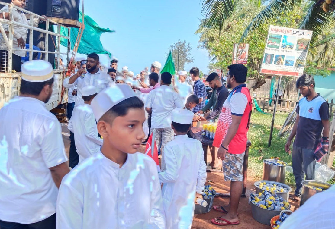 ಕುಂದಾಪುರ: ಕೋಡಿಯಲ್ಲಿ ಇಂದು ನಡೆದ ಮಿಲಾದುನ್ನಬಿ ಆಚರಣೆಯ ಜಾಥದಲ್ಲಿ ಸ್ಥಳೀಯ ಕೋಟಿ ಚೆನ್ನಯ್ಯ ಮಿತ್ರಕೂಟದವರು ತಂಪು ಪಾನೀಯ ವಿತರಿಸುವ ಮೂಲಕ ಸೌಹಾರ್ದತೆ ಮೆರೆದರು.
