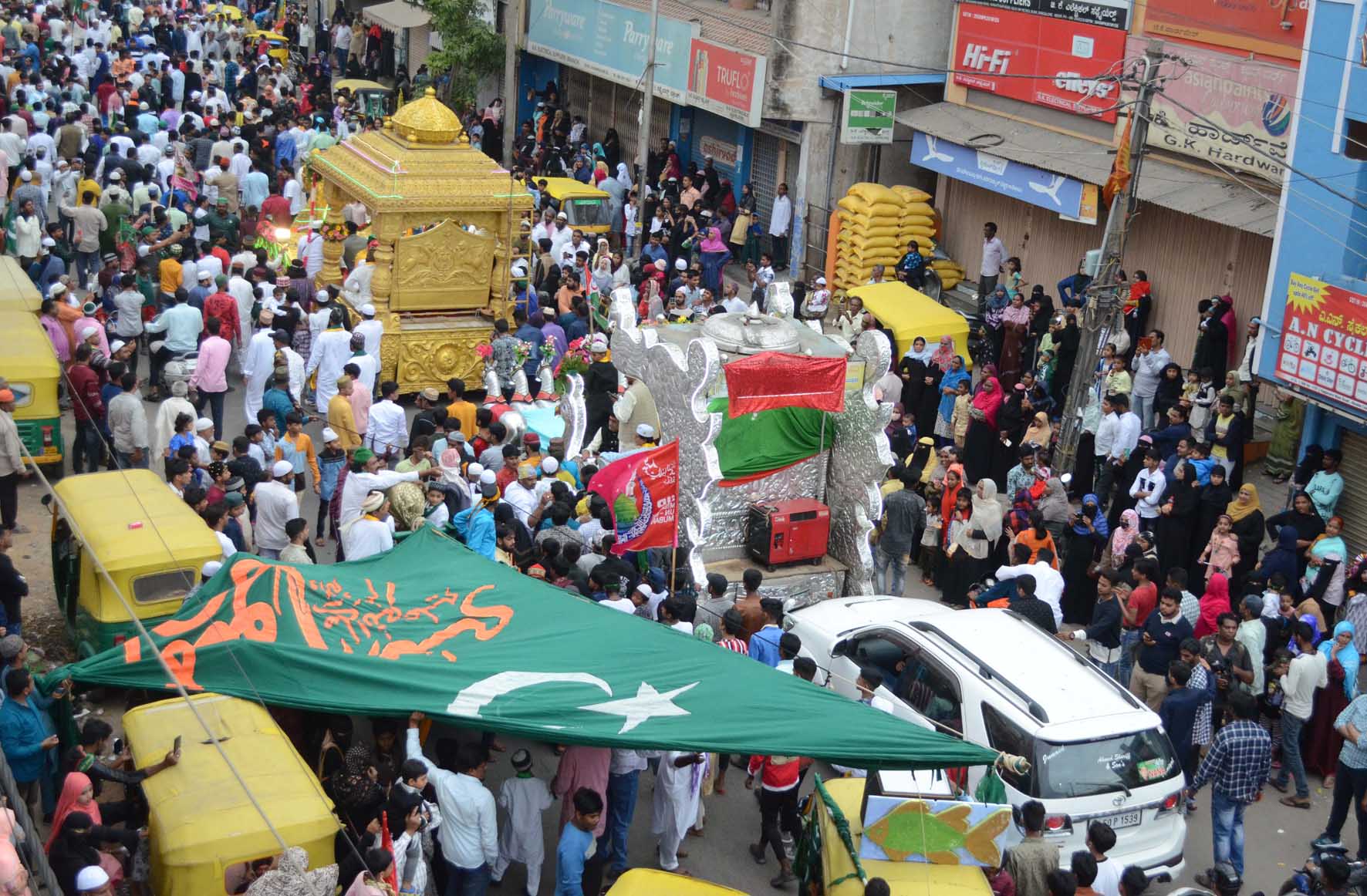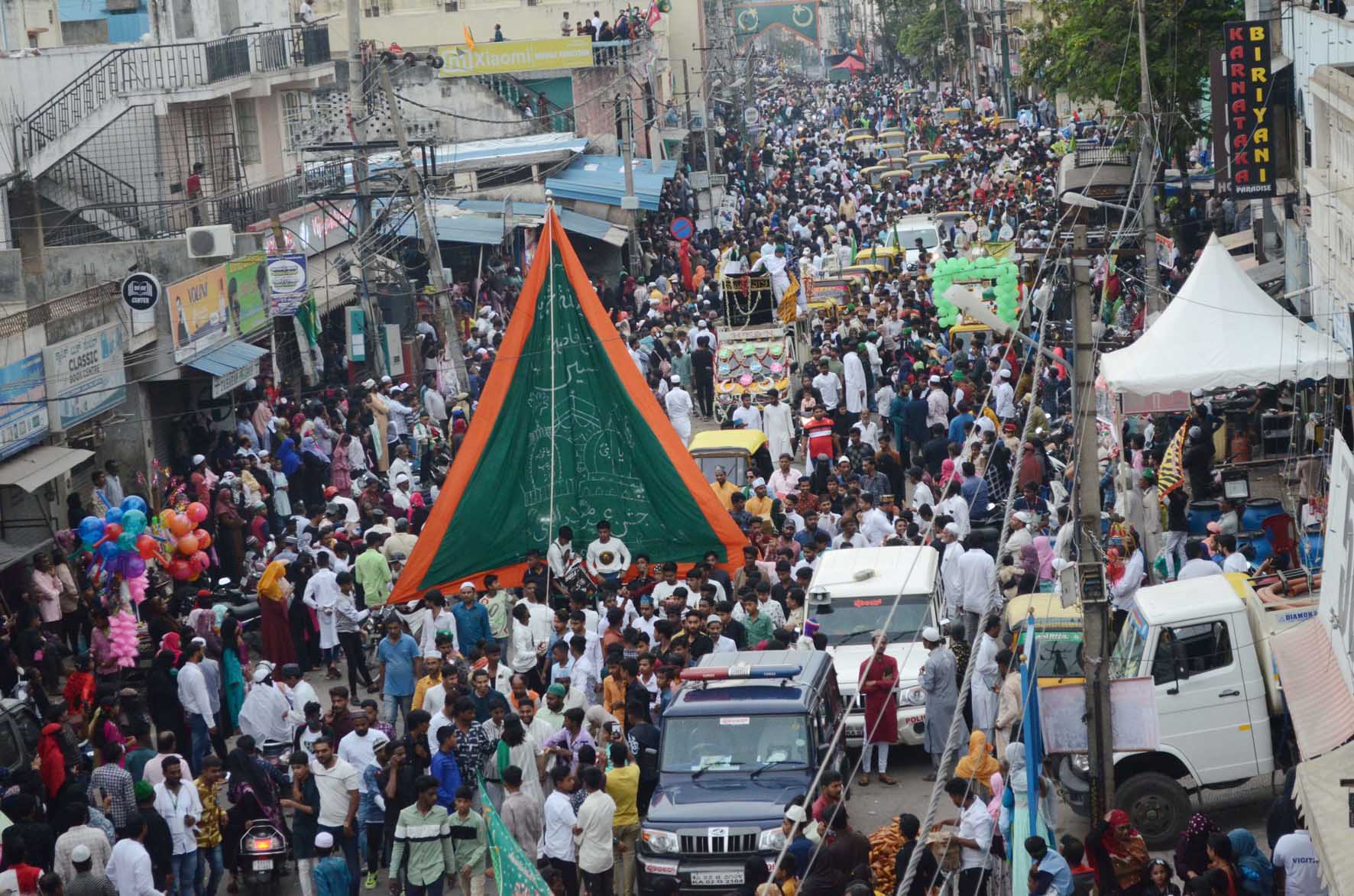 ರವಿವಾರ ಇಲ್ಲಿನ ಆರ್ಟಿನಗರ, ಶಿವಾಜಿನಗರ, ಗೋರಪ್ಪನಪಾಳ್ಯ, ಬಿಟಿಎಂ, ತಿಲಕ್ ನಗರ, ಶಿವಾಜಿನಗರ, ಯಾರಬ್ ನಗರ, ಕಾವಲ್ ಭೈರಸಂದ್ರ, ಲಕ್ಕಸಂದ, ಜಯನಗರ, ವಿಜಯನಗರ, ಆರ್ಆರ್ನಗರ, ಜೆಪಿನಗರ, ಸೇರಿದಂತೆ ಎಲ್ಲೆಡೆ ಮುಸ್ಲಿಮರು ಪ್ರವಾದಿ ಮುಹಮ್ಮದ್ ಮುಸ್ತಫಾ(ಸ.ಅ) ಅವರ ಸಂದೇಶಗಳು, ಪವಿತ್ರ ಮಕ್ಕಾ ಹಾಗೂ ಮದೀನಾದ ಸ್ತಬ್ಧ ಚಿತ್ರಗಳ ಮೆರವಣಿಗೆ ನಡೆಸಿದರು.