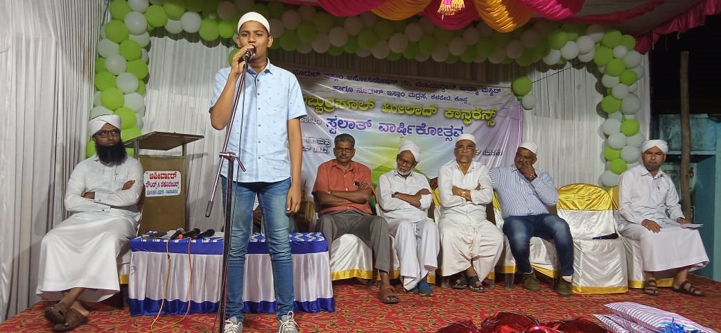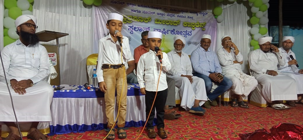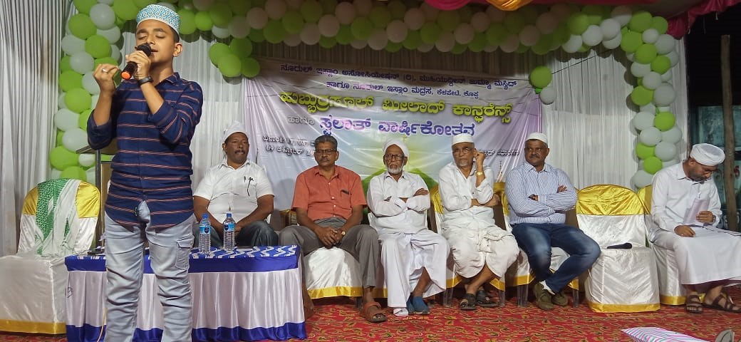 ಶನಿವಾರ ನೂರುಲ್ ಇಸ್ಲಾಂ ಶಾಫಿ ಮದ್ರಸದ ಮಕ್ಕಳಿಂದ ಮೀಲಾದ್ ಸಂದೇಶದ ಕಾರ್ಯಕ್ರಮಗಳು ನಡೆಯಿತು. ಇದೇ ಸಂದರ್ಭ ಜಮಾಅತ್ ಹಿರಿಯ ಸದಸ್ಯರುಗಳನ್ನು ಶಾಲು ಹೊದಿಸಿ ಸ್ಮರಣಿಕೆ ನೀಡಿ ಗೌರವಿಸಲಾಯಿತು.