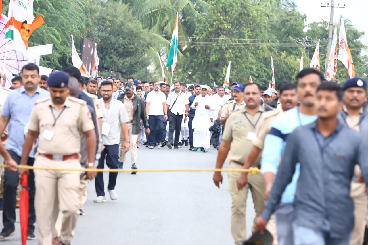 ಸಿದ್ದರಾಮಯ್ಯ ಅವರೊಂದಿಗೆ ಕಾಂಗ್ರೆಸ್ ಪಕ್ಷದ ಹಲವಾರು ಮುಖಂಡರು ಹೆಜ್ಜೆ ಹಾಕಿದರು.