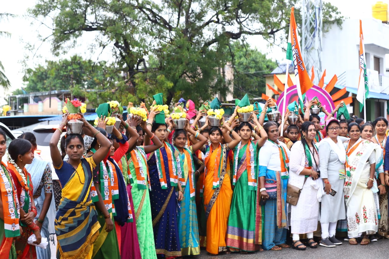 ರಸ್ತೆಯುದ್ದಕ್ಕೂ ಜನತೆ ಹರ್ಷೋದ್ಗಾರದೊಂದಿಗೆ ಭಾರತ ಐಕ್ಯತಾ ಯಾತ್ರೆಗೆ ಸ್ವಾಗತ ಕೋರಿದರು.