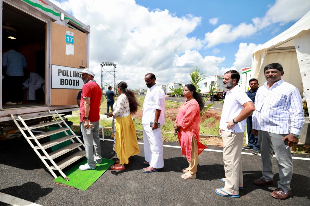 ಮತದಾನ ಹಿನ್ನೆಲೆ ಪಾದ ಯಾತ್ರೆ ಮೊಟಕುಗೊಳಿಸಲು ಸಾಧ್ಯವಿಲ್ಲ. ಹೀಗಾಗಿ ರಾಹುಲ್ ಗಾಂಧಿ ಹಾಗೂ ಅವರೊಂದಿಗೆ ಯಾತ್ರೆಯಲ್ಲಿ ಭಾಗಿಯಾಗಿರುವ 40 ಮಂದಿ ಸದಸ್ಯರಿಗೆ ವಿಶೇಷ ಮತಗಟ್ಟೆ ಸ್ಥಾಪಿಸಲಾಗಿದೆ.