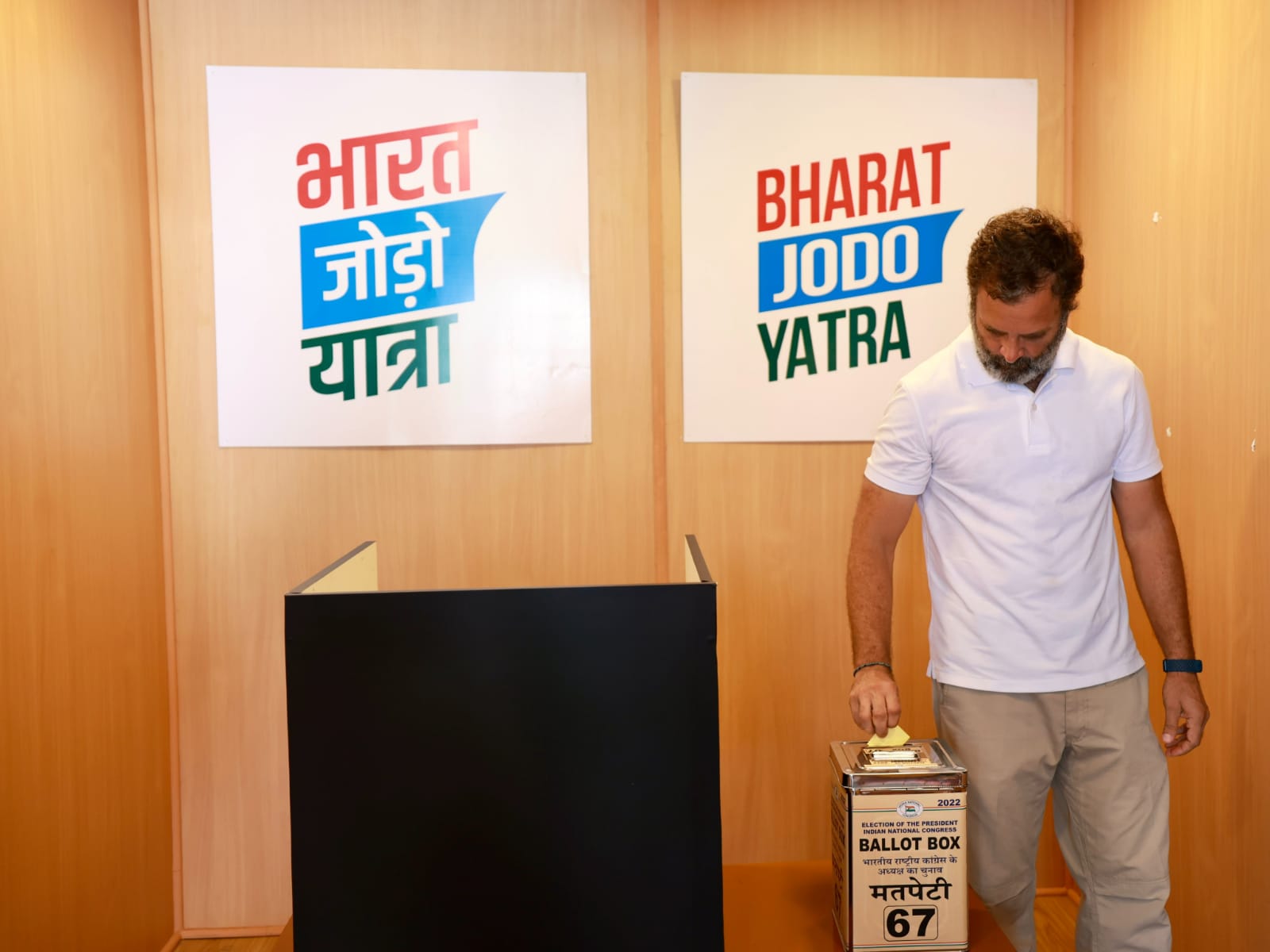‘ಭಾರತ್ ಜೋಡೊ ಯಾತ್ರೆ' ಕೈಗೊಂಡಿರುವ ಎಐಸಿಸಿ ನಾಯಕ ರಾಹುಲ್ ಗಾಂಧಿ ಸದ್ಯ ಬಳ್ಳಾರಿಯಲ್ಲಿದ್ದು, ಇಲ್ಲಿನ ಸಂಗನಕಲ್ಲು ವಿಶ್ರಾಂತಿ ತಾಣದಲ್ಲಿ ಸರತಿ ಸಾಲಿನಲ್ಲಿ ನಿಂತು ಮತ ಚಲಾಯಿಸಿದರು.