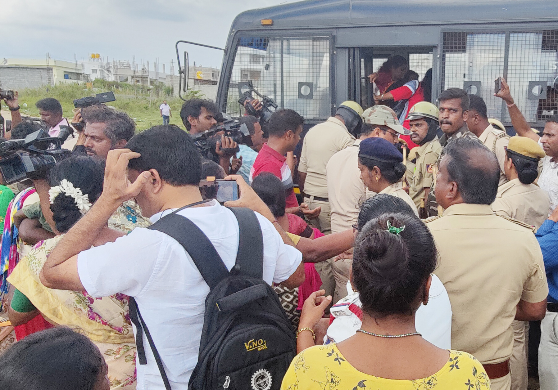ಜೆಸಿಬಿಗೆ ಅಡ್ಡ ಮಲಗಿ, ಕಾರ್ಯಾಚರಣೆಗೆ ವಿರೋಧ ವ್ಯಕ್ತಪಡಿಸಿದ ಪ್ರತಿಭಟನಾಕಾರರು