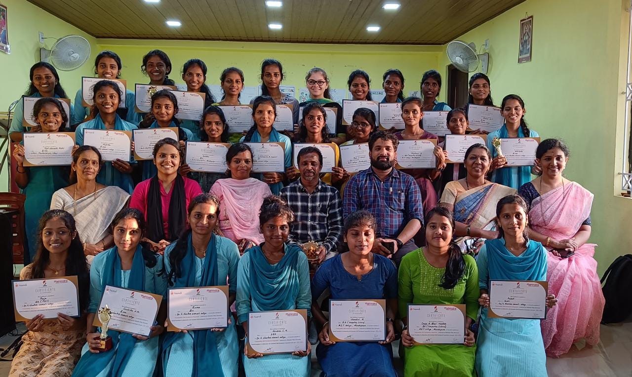 ನಾಂದಿ ಫೌಂಡೇಶನ್ ತರಬೇತುದಾರರಾದ ಕಾವ್ಯ, ಕೌಶಲ್ಯ ಅಭಿವೃದ್ಧಿ ಇಲಾಖೆಯ ಸಹಾಯಕ ನಿರ್ದೇಶಕ ಅರುಣ್ ಹಾಗೂ ಜಿಲ್ಲಾ ಸಲಹೆಗಾರ್ತಿ ಸಂಧ್ಯಾರಾಣಿ ಪ್ರಶಸ್ತಿ ಪತ್ರ ವಿತರಿಸಿದರು.