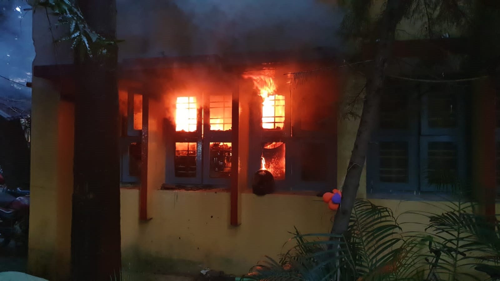 ಹಳೆಯ ದಾಖಲಾತಿಗಳಿದ್ದ ಕೊಠಡಿಯಲ್ಲಿ ಇಂದು ಮುಂಜಾನೆ ಬೆಳಗ್ಗೆ 5:30ರ ಸುಮಾರಿಗೆ ಬೆಂಕಿ ಕಾಣಿಸಿಕೊಂಡಿದೆ. ಅಗ್ನಿಶಾಮಕ ದಳದವರು ಬೆಂಕಿಯನ್ನು ಆರಿಸಿದ್ದಾರೆ. ಬೆಂಕಿಯಿಂದ ಕೆಲವು ಕಡತಗಳು ಹಾನಿಗೀಡಾಗಿವೆ ಎಂದು ತಿಳಿದುಬಂದಿದೆ.
