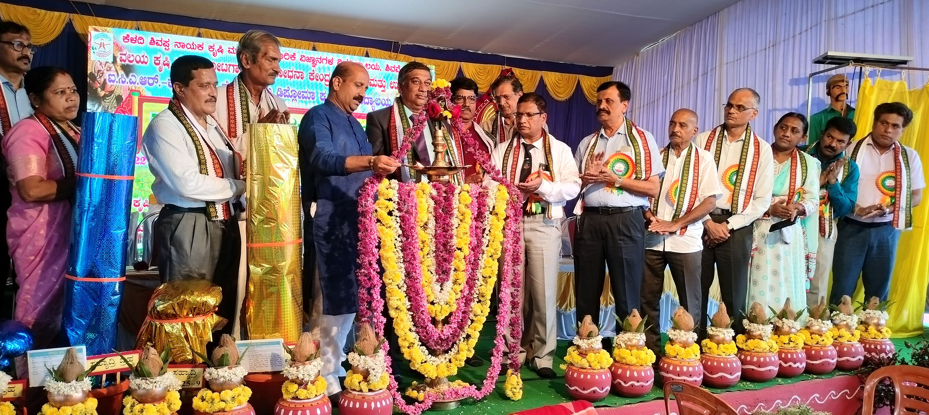 ಕಾರ್ಯಕ್ರಮದಲ್ಲಿ ದಿಕ್ಸೂಚಿ ಭಾಷಣ ಮಾಡಿದ ಕೆಳದಿ ಶಿವಪ್ಪ ನಾಯಕ ಕೃಷಿ ಮತ್ತು ತೋಟಗಾರಿಕೆ ವಿಜ್ಞಾನಗಳ ವಿಶ್ವವಿದ್ಯಾಲಯ ಶಿವಮೊಗ್ಗದ ಕುಲಪತಿ ಡಾ.ಆರ್.ಸಿ.ಜಗದೀಶ್, ರೈತರಿಗೆ ಅನುಕೂಲವಾಗುವಂತೆ ಹೊಸ ಸಂಶೋಧನೆ ಗಳು, ಹೊಸ ತಂತ್ರಜ್ಞಾನ ಅಳವಡಿಕೆ, ಜೈವಿಕ ಗೊಬ್ಬರ, ಜೈವಿಕ ಕೀಟನಾಶಕಗಳ ಮೂಲಕ ಫಲವತ್ತತೆ ಹೆಚ್ಚಳ, ರೈತರೊಂದಿಗೆ ನಿರಂತರ ಸಂಪರ್ಕದ ಮೂಲಕ ಕೃಷಿ ವಿವಿ ರೈತರು ಮತ್ತು ಕೃಷಿಯ ಅಭಿವೃಧ್ದಿಗೆ ಕಾರ್ಯನಿರ್ವಹಿಸುತ್ತಿದ್ದು, ತಲಾ ೨ ಹೊಸ ಭತ್ತದ ತಳಿಗಳು ಮತ್ತು ಗೇರು ತಳಿಗಳನ್ನು ಪರಿಚಯಿಸಲಾಗುತ್ತಿದೆ ಎಂದರು.
