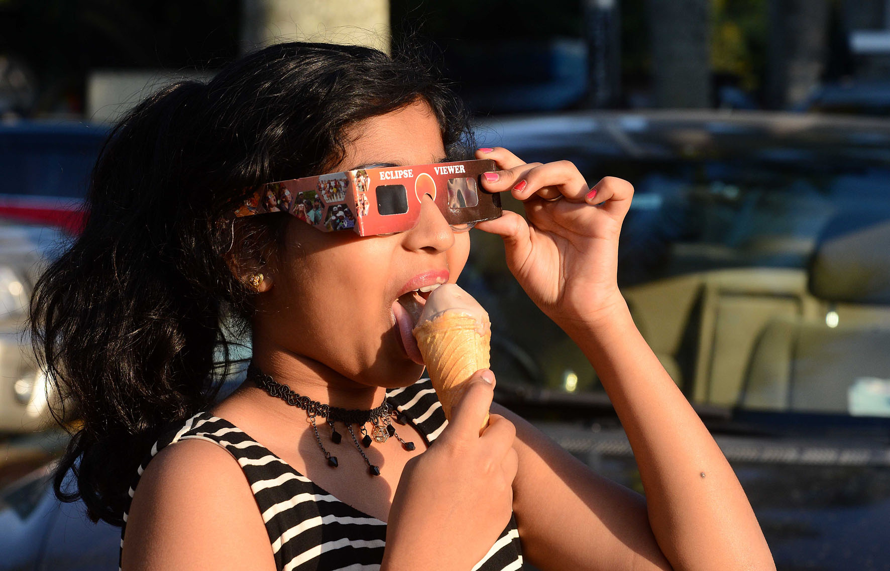 ಬೆಂಗಳೂರು, ಅ.25: ಇಂದಿನ ಆಗಸದಲ್ಲಿ ಗೋಚರಿಸಿದ ಅಪರೂಪದ ಖಗೋಳ ಕೌತುಕ ಪಾಶ್ರ್ವ ಸೂರ್ಯ ಗ್ರಹಣವನ್ನು ರಾಜಧಾನಿ ಬೆಂಗಳೂರಿನಲ್ಲಿ ಬಹುತೇಕರು ಸೌರ ಕನ್ನಡಕಗಳನ್ನು ಬಳಸಿ, ಮನೆಗಳಲ್ಲೇ ಗ್ರಹಣ ವೀಕ್ಷಿಸಿದರು.