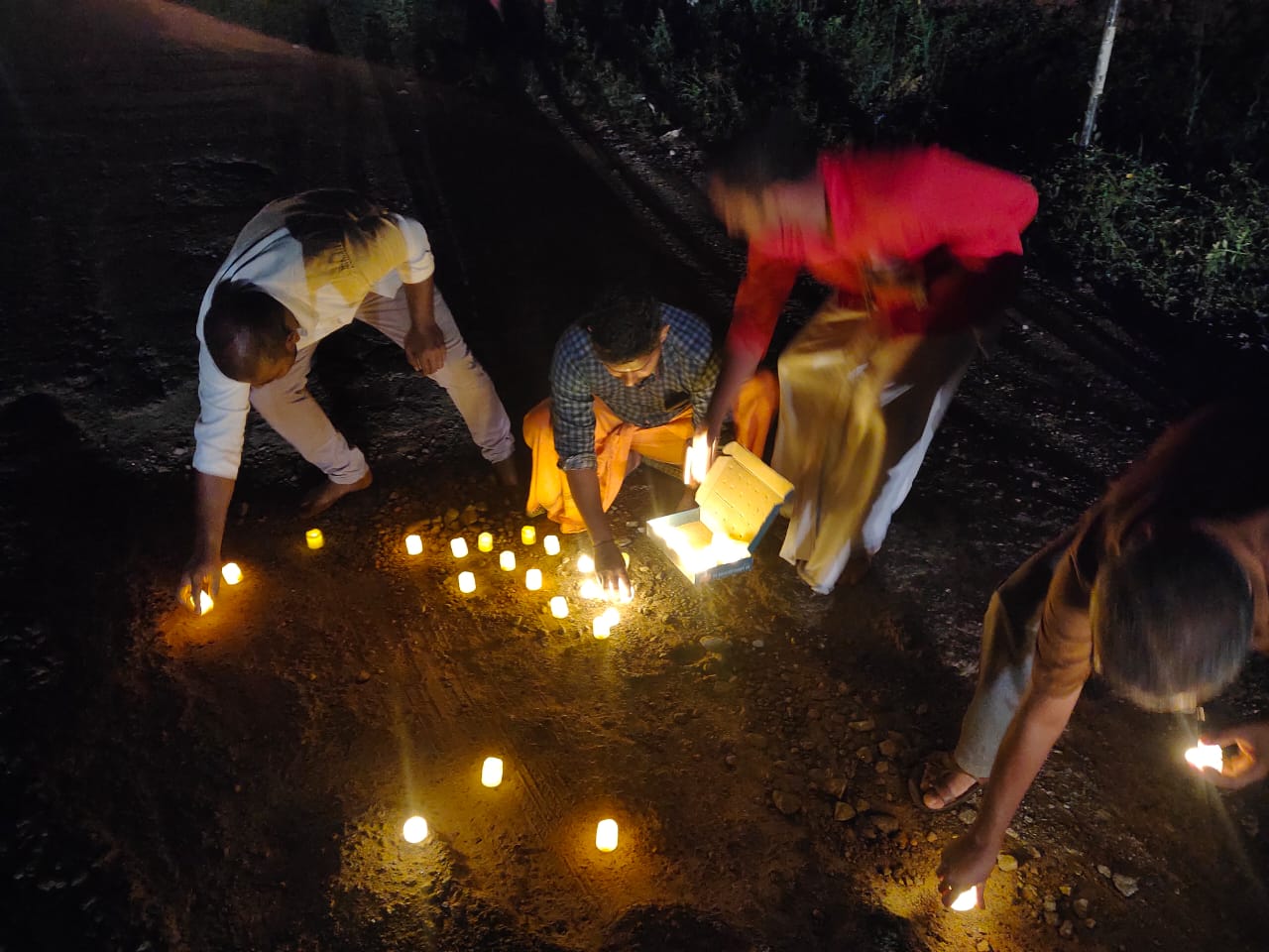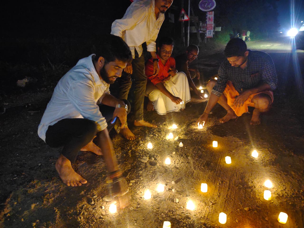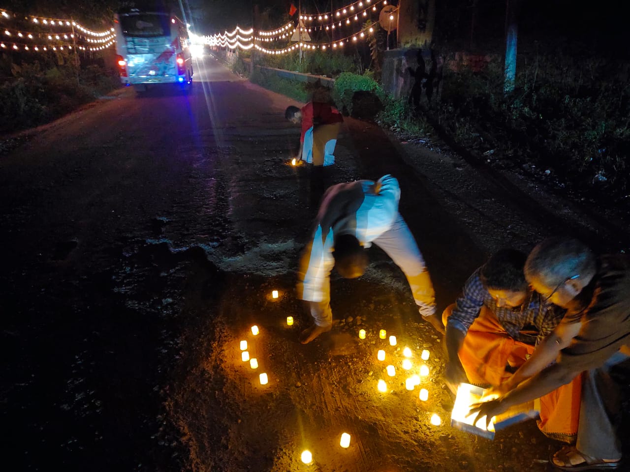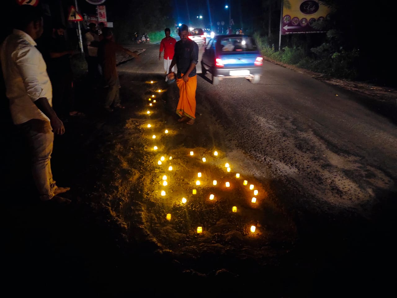 ಬುಧವಾರ ಸಂಜೆ ಬೆಳ್ತಂಗಡಿ ಸಮೀಪದ ಲಾಯಿಲ ಗ್ರಾಮದ ರಾಘವೇಂದ್ರ ಮಠದ ಹತ್ತಿರ ರಾಷ್ಟ್ರೀಯ ಹೆದ್ದಾರಿಯ ರಸ್ತೆ ಗುಂಡಿಗಳಲ್ಲಿ ದೀಪ ಹಚ್ಚಿ ದೀಪಾವಳಿ ಆಚರಣೆ ಮಾಡಲಾಯಿತು.