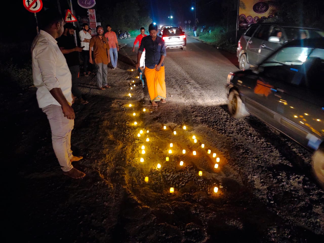 ಈ ಸಂದರ್ಭ ಸಾಮಾಜಿಕ ಕಾರ್ಯಕರ್ತ, ಸಿಪಿಐ(ಎಂ) ನಾಯಕ ಶೇಖರ್ ಲಾಯಿಲ ಮಾತನಾಡಿ, ರಾಷ್ಟ್ರೀಯ ಹೆದ್ದಾರಿಯಲ್ಲಿರುವ ಗುಂಡಿಗಳಲ್ಲಿ ದಿನನಿತ್ಯ ಪ್ರಯಾಣಿಸುವ ಜನಪ್ರತಿನಿಧಿಗಳು, ಅಧಿಕಾರಿಗಳಿಗೆ ಕಣ್ಣು ಕಾಣದಿದ್ದು ದೀಪ ಹಚ್ಚಿ ಗುಂಡಿ ಕಾಣುವಂತೆ ಮಾಡುವ ಉದ್ದೇಶದಿಂದ ಈ ರೀತಿ ಮಾಡಲಾಗಿದೆ ಎಂದರು.