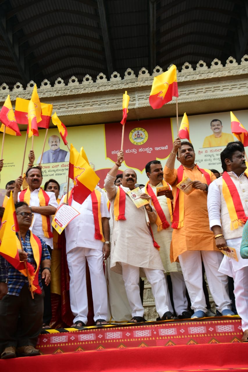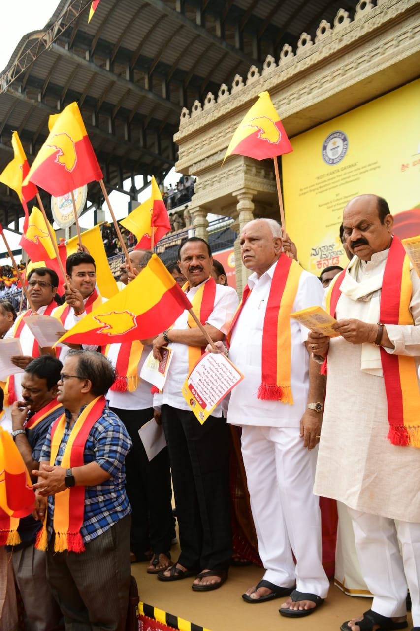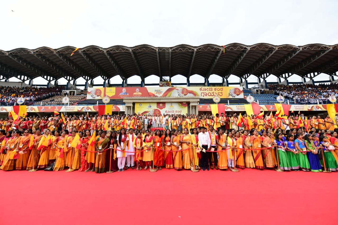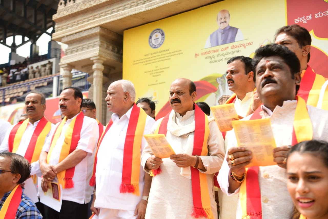 ಬೆಂಗಳೂರು, ಅ.28: 67ನೇ ಕನ್ನಡ ರಾಜ್ಯೋತ್ಸವದ ಅಂಗವಾಗಿ ಕನ್ನಡ ಮತ್ತು ಸಂಸ್ಕೃತಿ ಇಲಾಖೆಯು ಬೆಂಗಳೂರಿನ ಕಂಠೀರವ ಸ್ಟೇಡಿಯಂನಲ್ಲಿ ಶುಕ್ರವಾರ ಆಯೋಜಿಸಿದ್ದ ಕೋಟಿ ಕಂಠ ಗಾಯನ ಕಾರ್ಯಕ್ರಮದಲ್ಲಿ ಮುಖ್ಯಮಂತ್ರಿ ಬಸವರಾಜ ಬೊಮ್ಮಾಯಿ ಪಾಲ್ಗೊಂಡು, ಕೋಟಿ ಕಂಠ ಗಾಯನ ಕಾರ್ಯಕ್ರಮಕ್ಕೆ ಚಾಲನೆ ನೀಡಿದರು.