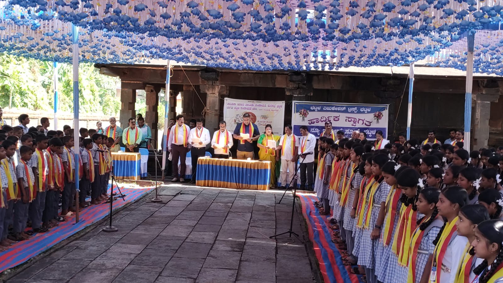 ಉಪಸ್ಥಿತರಿದ್ದ ಜನಪ್ರತಿನಿಧಿಗಳು, ಅಧಿಕಾರಿಗಳು, ಶಿಕ್ಷಕರು, ನ್ಯೂ ಇಂಗ್ಲೀಷ್ ಸ್ಕೂಲ್, ವಿದ್ಯಾಭಾರತಿ ಶಾಲೆಯ ವಿದ್ಯಾರ್ಥಿಗಳು ಉದಯವಾಗಲಿ ನಮ್ಮ ಚೆಲುವ ಕನ್ನಡ ನಾಡು, ಬಾರಿಸು ಕನ್ನಡ ಡಿಂಡಿಮವ, ಹಚ್ಚೇವು ಕನ್ನಡದ ದೀಪ, ವಿಶ್ವವಿನೂತನ ವಿದ್ಯಾಚೇತನ, ಹುಟ್ಟಿದರೆ ಕನ್ನಡ ನಾಡಲ್ಲಿ ಹುಟ್ಟಬೇಕು ಎನ್ನುವ ಐದು ಜನಪ್ರಿಯ ಹಾಡನ್ನು ಹಾಡಿದರು. ಇದೇ ಸಂದರ್ಭದಲ್ಲಿ ಕನ್ನಡ ನಾಡು ರಕ್ಷಣೆ ಕುರಿತು ಪ್ರತಿಜ್ಞೆ ಸ್ವೀಕರಿಸಲಾಯಿತು.