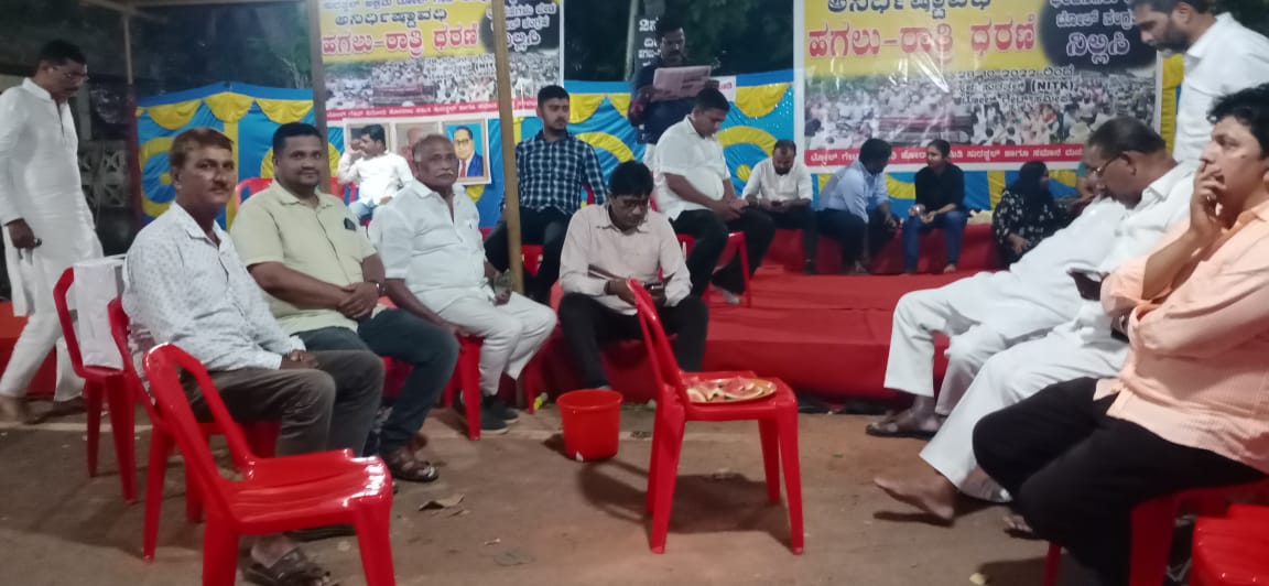 ಸುರತ್ಕಲ್, ಅ.29: ಸುರತ್ಕಲ್ ಟೋಲ್ ಗೇಟ್ ಹೋರಾಟ ಸಮಿತಿ ಮತ್ತು ಅವಿಭಜಿತ ದಕ್ಷಿಣ ಕನ್ನಡ ಜಿಲ್ಲೆಯ ಸಮಾನ ಮನಸ್ಕ ಸಂಘಟನೆಗಳ ನೇತೃತ್ವದಲ್ಲಿ ಟೋಲ್ ಗೇಟ್ ತೆರವುಗೊಳಿಸುವಂತೆ ಆಗ್ರಹಿಸಿ ನಡೆಯುತ್ತಿರುವ ಅಹೋ ರಾತ್ರಿಯ ಧರಣಿ ಸತ್ಯಾಗ್ರಹದಲ್ಲಿ ಯುವ ಕಾಂಗ್ರೆಸ್ ರಾಜ್ಯಾಧ್ಯಕ್ಷ ಮಹಮ್ಮದ್ ನೆಲಪಾಡ್ ಭಾಗವಹಿಸಿದರು.