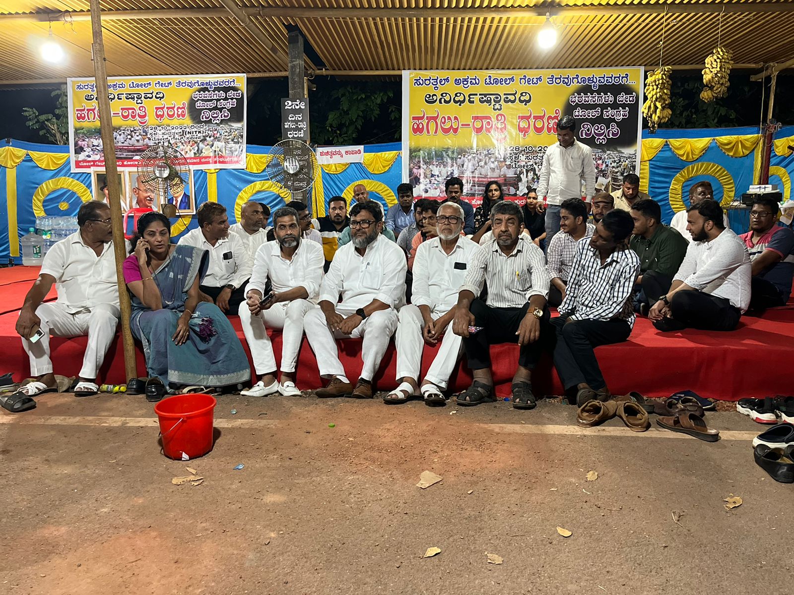 ಟೋಲ್ ಗೇಟ್ ತೆರವುಗೊಳಿಸುವಂತೆ ಒತ್ತಾಯಿಸಿ ಅಹೋ ರಾತ್ರಿ ಧರಣಿ