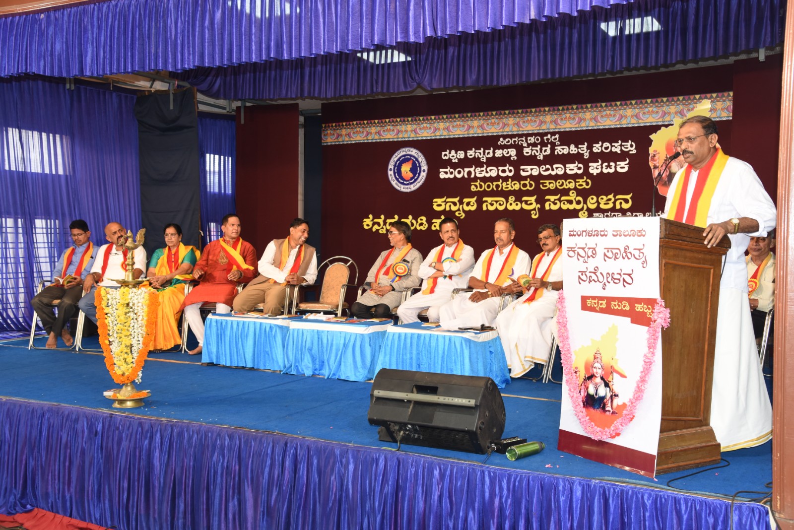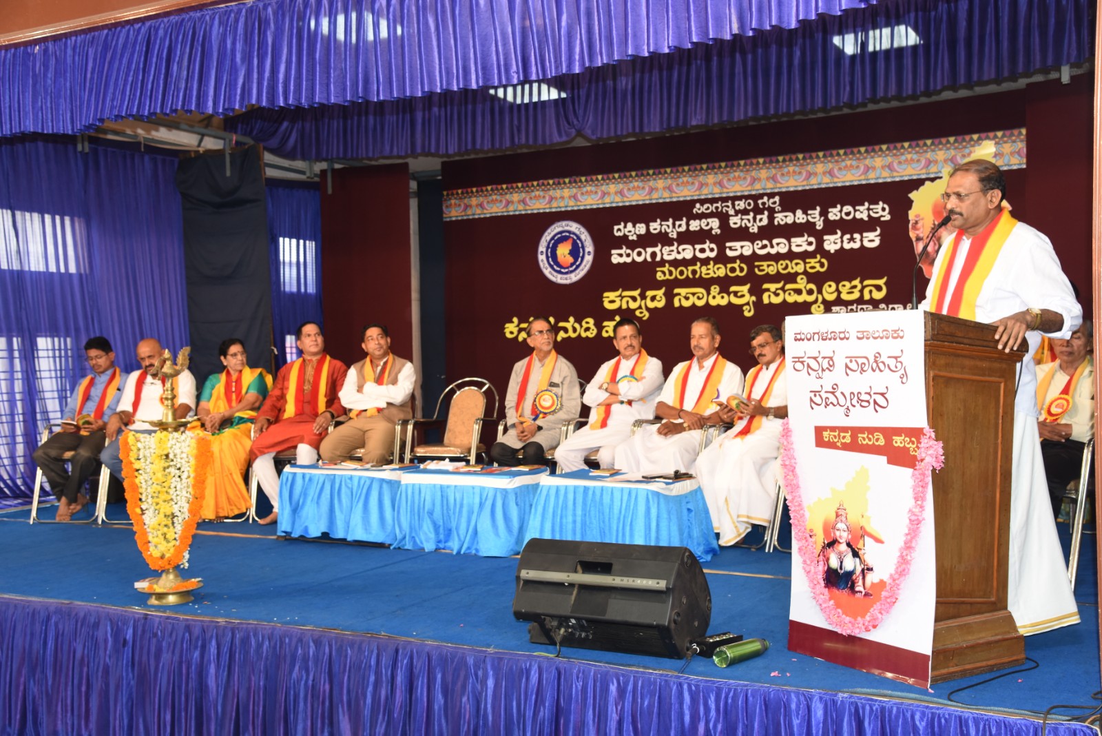 ಅವರು ಇಂದು ದಕ್ಷಿಣ ಕನ್ನಡ ಸಾಹಿತ್ಯ ಪರಿಷತ್ ಮಂಗಳೂರು ತಾಲೂಕು ಘಟಕದ ವತಿಯಿಂದ ನಗರದ ಶಾರದಾ ವಿದ್ಯಾಲಯದಲ್ಲಿ ಆಯೋಜಿಸಿರುವ 'ಮಂಗಳೂರು ತಾಲೂಕು ಕನ್ನಡ ಸಾಹಿತ್ಯ ಸಮ್ಮೇಳನ'ದ ಅಧ್ಯಕ್ಷತೆ ವಹಿಸಿ ಮಾತನಾಡುತ್ತಿದ್ದರು.