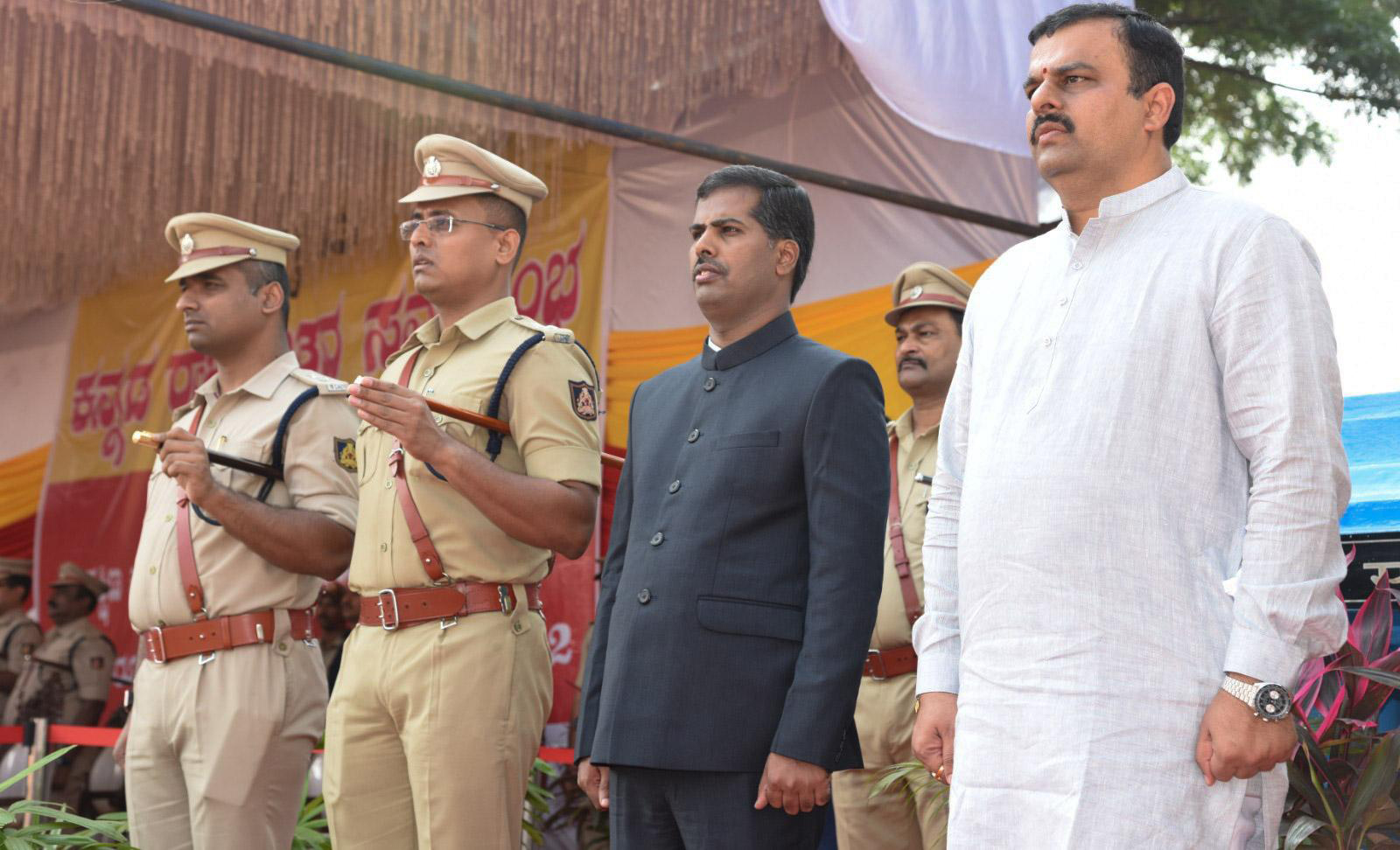 ಮಂಗಳೂರು,ನ.1: ಇಲ್ಲಿನ ನೆಹರೂ ಮೈದಾನದಲ್ಲಿ ಜಿಲ್ಲಾಡಳಿತದ ವತಿಯಿಂದ ಹಮ್ಮಿಕೊಳ್ಳಲಾಗಿದ್ದ ಕನ್ನಡ ರಾಜ್ಯೋತ್ಸವದಲ್ಲಿ ಇಂಧನ, ಕನ್ನಡ ಮತ್ತು‌ ಸಂಸ್ಕೃತಿ ಹಾಗೂ ಜಿಲ್ಲಾ ಉಸ್ತುವಾರಿ ಸಚಿವ ವಿ.ಸುನೀಲ್ ಕುಮಾರ್ ಧ್ವಜಾರೋಹಣ ನೆರವೇರಿಸಿ, ಗೌರವ ವಂದನೆ ಸ್ವೀಕರಿಸಿದರು.