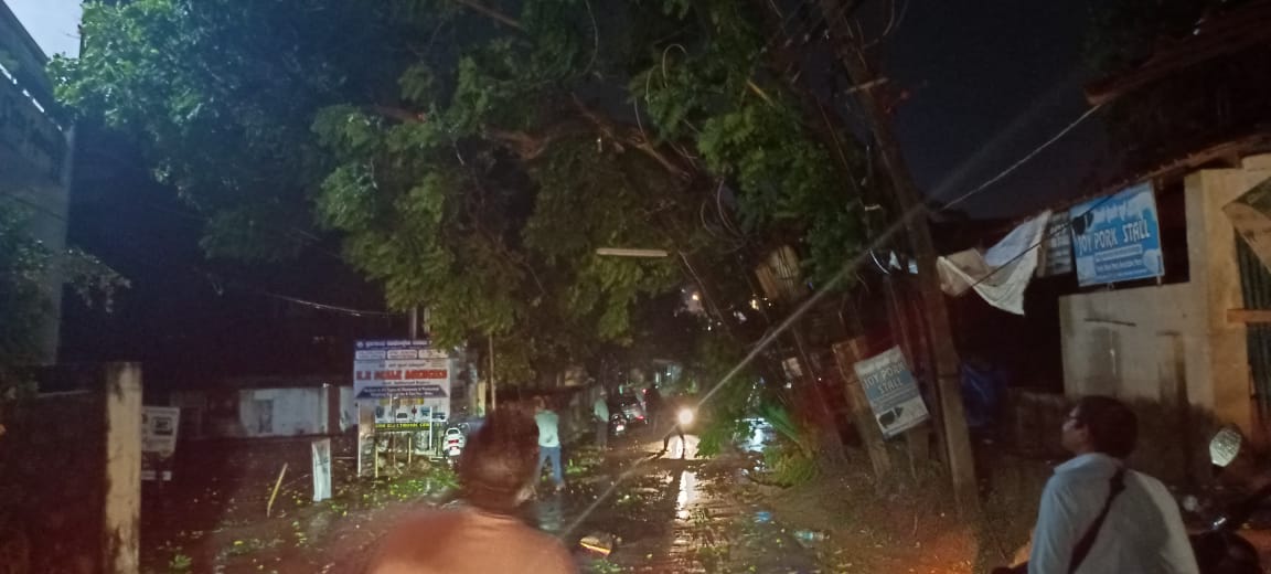 ರಾತ್ರಿ ಸುರಿದ ಭಾರೀ ಗಾಳಿ, ಮಳೆಗೆ ಮೂಡ ಕೆಫೆ ಬಳಿ ಇದ್ದ ಬೃಹತ್ ಮರವೊಂದು ಉರುಳಿದೆ. ಆದರೆ, ಅದರ ಪಕ್ಕದಲ್ಲಿ ವಿದ್ಯುತ್ ಟ್ರಾನ್ಸ್ ಫಾರ್ಮರ್ ಇದ್ದು, ಮರ ವಿದ್ಯುತ್ ವಯರ್ ಮೇಲೆ ಬಿದ್ದಿದ್ದು, ಯಾವುದೇ ಕ್ಷಣದಲ್ಲಿ ರಸ್ತೆಗೆ ಉರುಳುವ ಸಾಧ್ಯತೆ ಇದೆ.