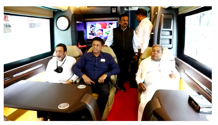 ಚುನಾವಣಾ ಪ್ರಚಾರಕ್ಕಾಗಿ ಸಿದ್ಧಪಡಿಸಿರುವ ವಿಶೇಷ ಬಸ್ನಲ್ಲಿ ಬೆಂಗಳೂರಿನಿಂದ ಕೋಲಾರಕ್ಕೆ ಪ್ರಯಾಣ ಬೆಳೆಸಿದರು.