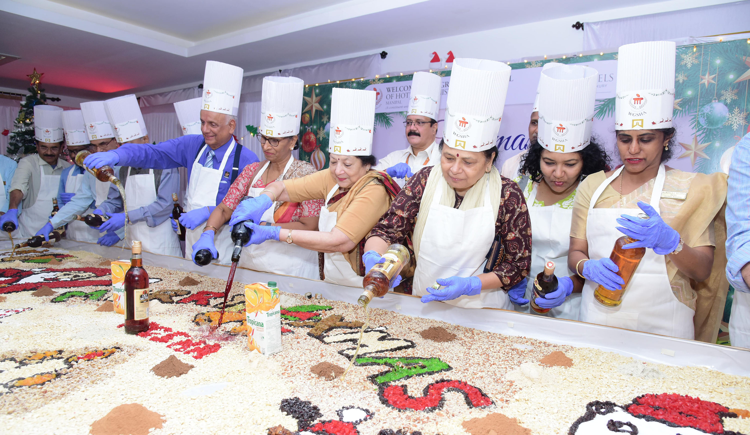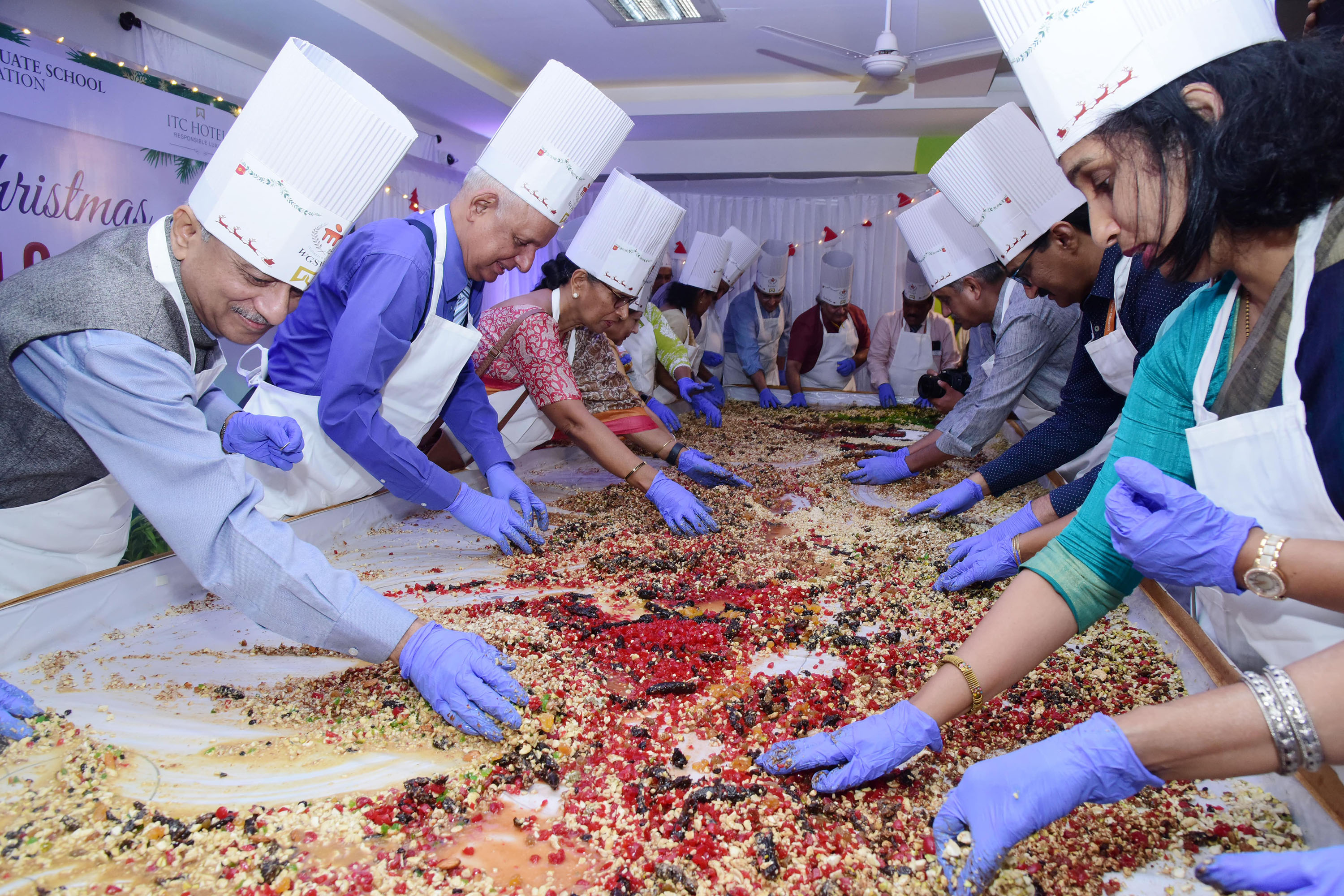 ಮಣಿಪಾಲ ಮಾಹೆಯ ವೆಲ್ಕಮ್ ಗ್ರೂಪ್ ಗ್ರಾಜ್ಯುವೇಟ್ ಸ್ಕೂಲ್ ಆಫ್ ಹೊಟೇಲ್ ಅಡ್ಮಿಸ್ಟ್ರೇಷನ್ ವತಿಯಿಂದ ನಡೆದ ಕೇಕ್ ಮಿಕ್ಸಿಂಗ್ ಕಾರ್ಯಕ್ರಮ ದಲ್ಲಿ ಕಿಲೋಗಟ್ಟಲೆ ನಟ್ಸ್ ಮತ್ತು ಡ್ರೈಪ್ರುಟ್ಸ್ಗಳನ್ನು ವಿವಿಧ ಬಗೆಯ ಮದ್ಯದಲ್ಲಿ ಕಲಸಿ ನೆನೆಸಿ ಇಡಲಾಯಿತು.