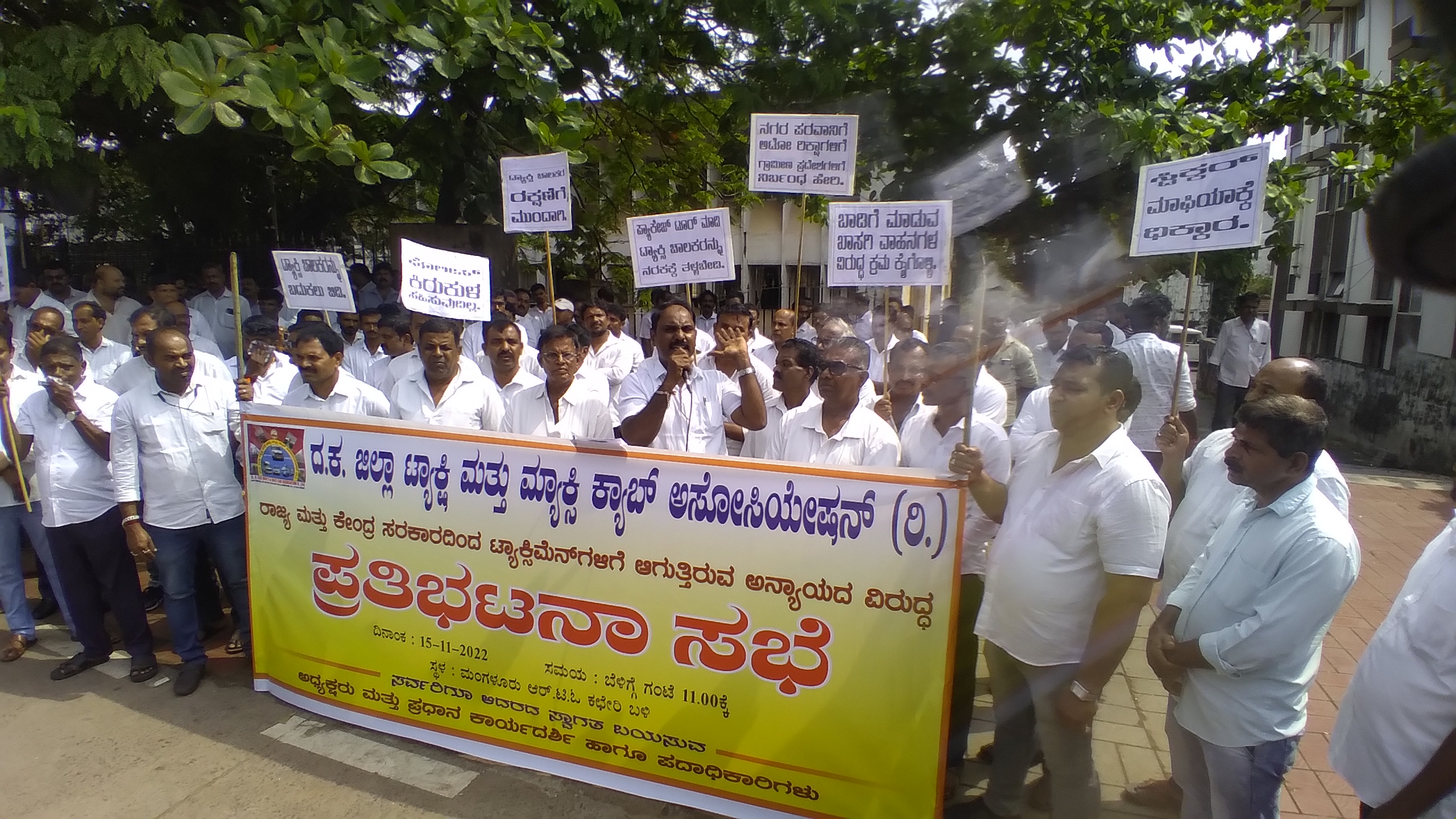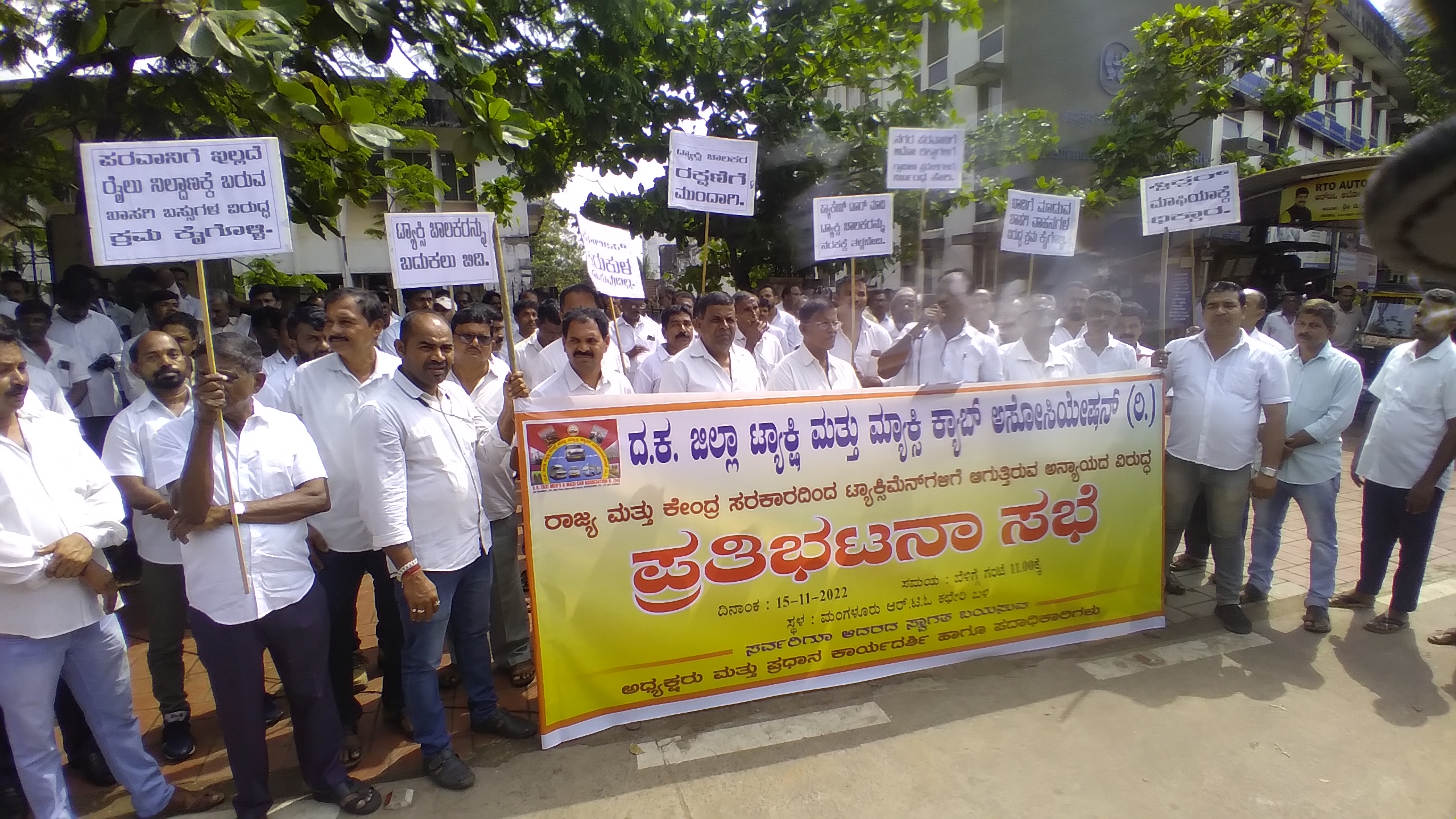 ಮಂಗಳೂರು, ನ. 15: ವಿವಿಧ ಬೇಡಿಕೆಗಳನ್ನು ಈಡೇರಿಸುವಂತೆ ಆಗ್ರಹಿಸಿ ದಕ್ಷಿಣ ಕನ್ನಡ ಜಿಲ್ಲಾ ಟ್ಯಾಕ್ಸಿ ಮತ್ತು ಮ್ಯಾಕ್ಸಿ ಕ್ಯಾಬ್ ಅಸೋಸಿಯೇಶನ್ ವತಿಯಿಂದ ಮಂಗಳೂರಿನ ಆರ್ಟಿಓ ಕಚೇರಿ ಎದುರು ಇಂದು ಪ್ರತಿಭಟನೆ ನಡೆಯಿತು.