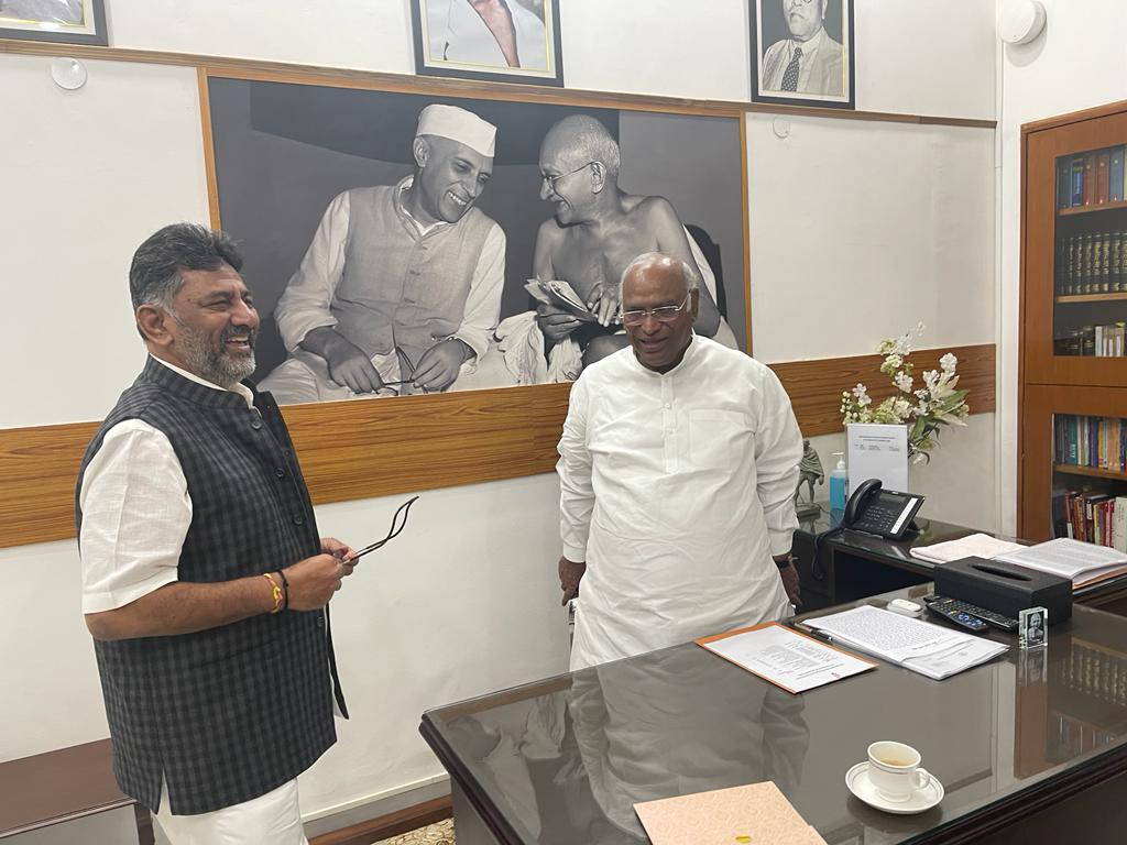 ಈಡಿ ವಿಚಾರಣೆ ಹಿನ್ನೆಲೆಯಲ್ಲಿ ದೆಹಲಿಗೆ ಹೋಗಿದ್ದ ಡಿಕೆಶಿ ಅವರು, ಮಂಗಳವಾರ ದೆಹಲಿಯ ಖರ್ಗೆ ಅವರ ನಿವಾಸದಲ್ಲಿ ಬರಲಿರುವ ವಿಧಾನಸಭಾ ಚುನಾವಣೆಯ ಪೂರ್ವಸಿದ್ಧತೆಗಳ ಕುರಿತು ಮಹತ್ವದ ಮಾತುಕತೆ ನಡೆಸಿದ್ದಾರೆನ್ನಲಾಗಿದೆ.