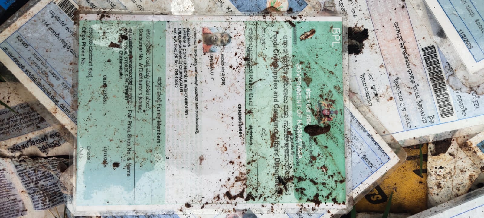 ಚಿಕ್ಕಮಗಳೂರು: ಕಸದ ರಾಶಿಯಲ್ಲಿ ನೂರಾರು ಪಡಿತರ ಚೀಟಿ ಪತ್ತೆ!