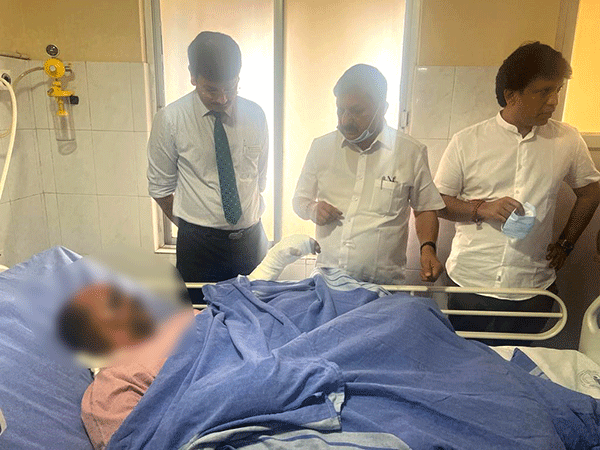ಮಂಗಳೂರು, ನ.22: ಪಂಪ್ ವೆಲ್ ಸಮೀಪದ ನಾಗುರಿಯಲ್ಲಿ ಕಳೆದ ಶನಿವಾರ ಆಟೊ ರಿಕ್ಷಾದಲ್ಲಿ ಕುಕ್ಕರ್ ಬಾಂಬ್ ಸ್ಫೋಟಗೊಂಡಿದ್ದರಿಂದ ತೀವ್ರ ಗಾಯಗೊಂಡಿರುವ ಆಟೋರಿಕ್ಷಾ ಚಾಲಕ ಪುರುಷೋತ್ತಮ ಪೂಜಾರಿಯವರನ್ನು ರಾಜ್ಯ ಗೃಹ ಸಚಿವ ಆರಗ ಜ್ಞಾನೇಂದ್ರ ಇಂದು ಭೇಟಿಯಾಗಿ ಆರೋಗ್ಯ ವಿಚಾರಿಸಿದರು.